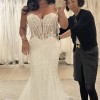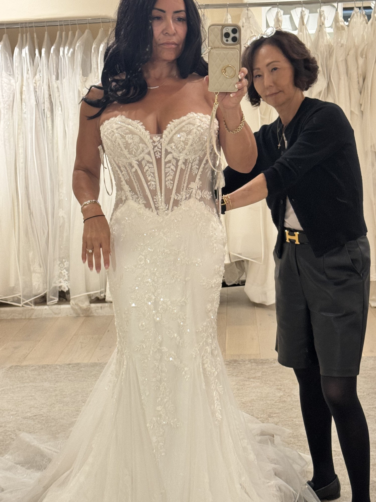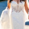 This Maggie Sottero Benjie wedding dress is the embodiment of elegance and romance. From the moment I tried it on, I felt like the most beautiful version of myself. The stunning trumpet silhouette hugs your curves in all the right places, creating a flattering look that will leave every guest in awe. The sweetheart neckline adds a touch of femininity, perfectly complemented by the strapless design that showcases your shoulders.