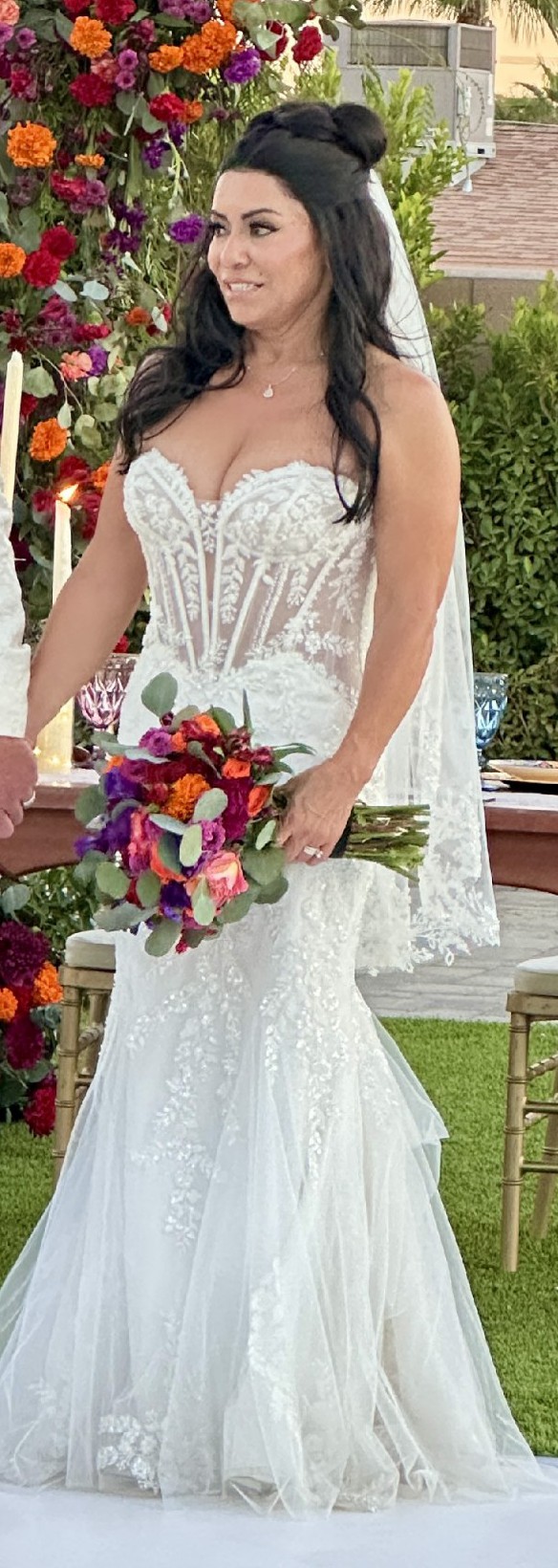 As I walked down the aisle in this dress, I could feel the love and magic surrounding me. Now, I hope it finds a new home where it can create more beautiful memories. If you're a size 8 and looking for that perfect dress to say "I do" in, this is the one you’ve been dreaming of.