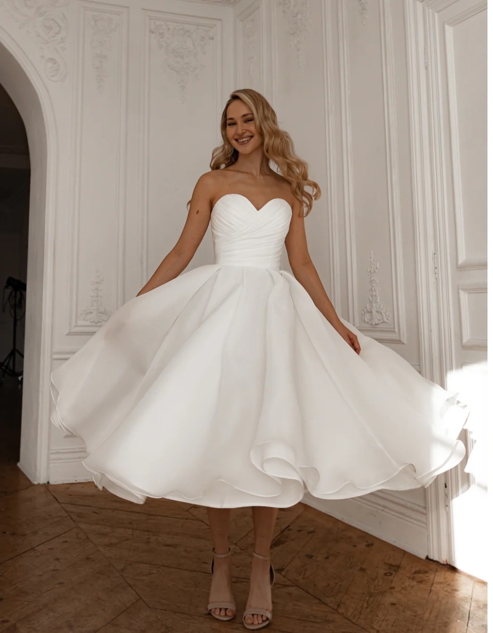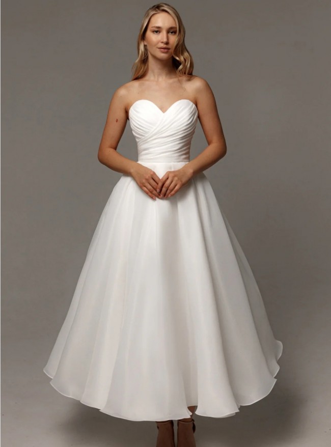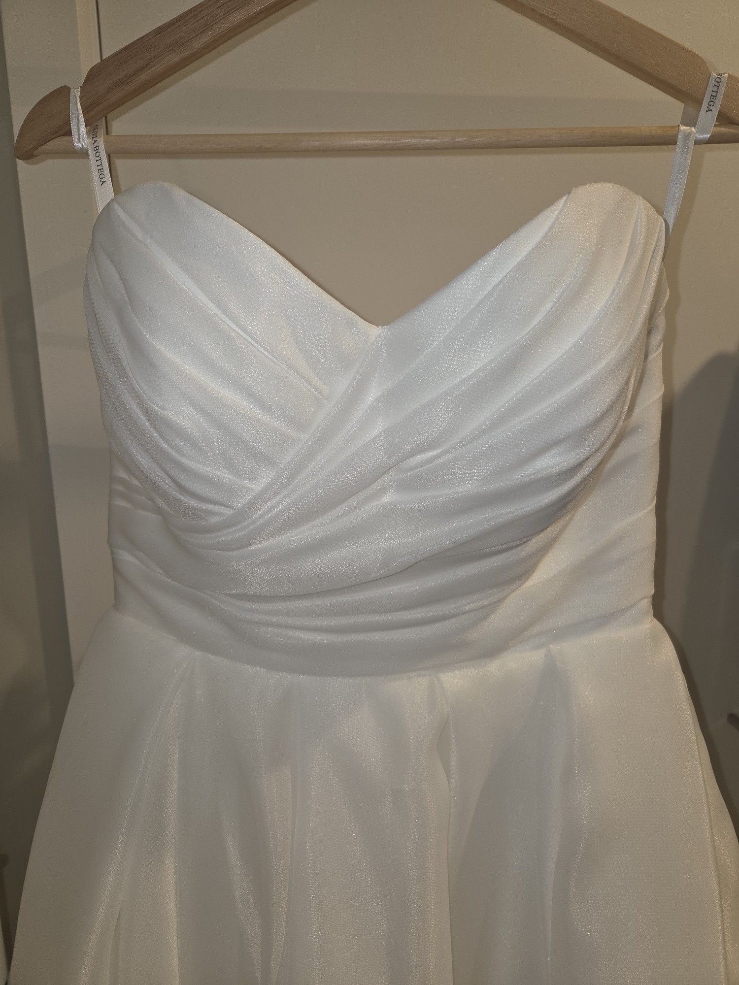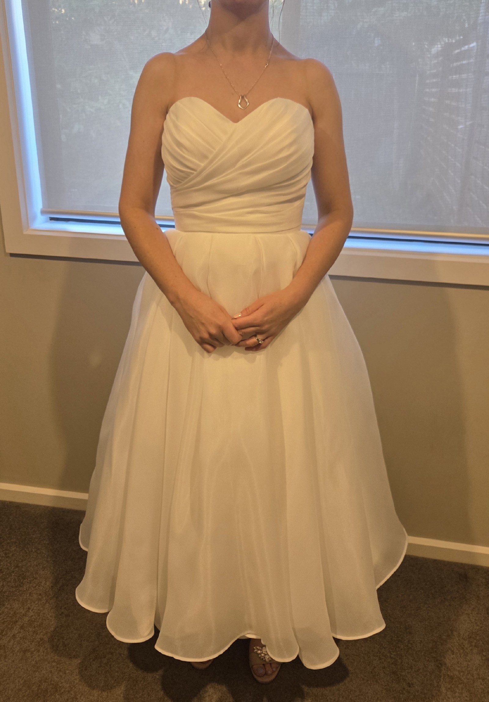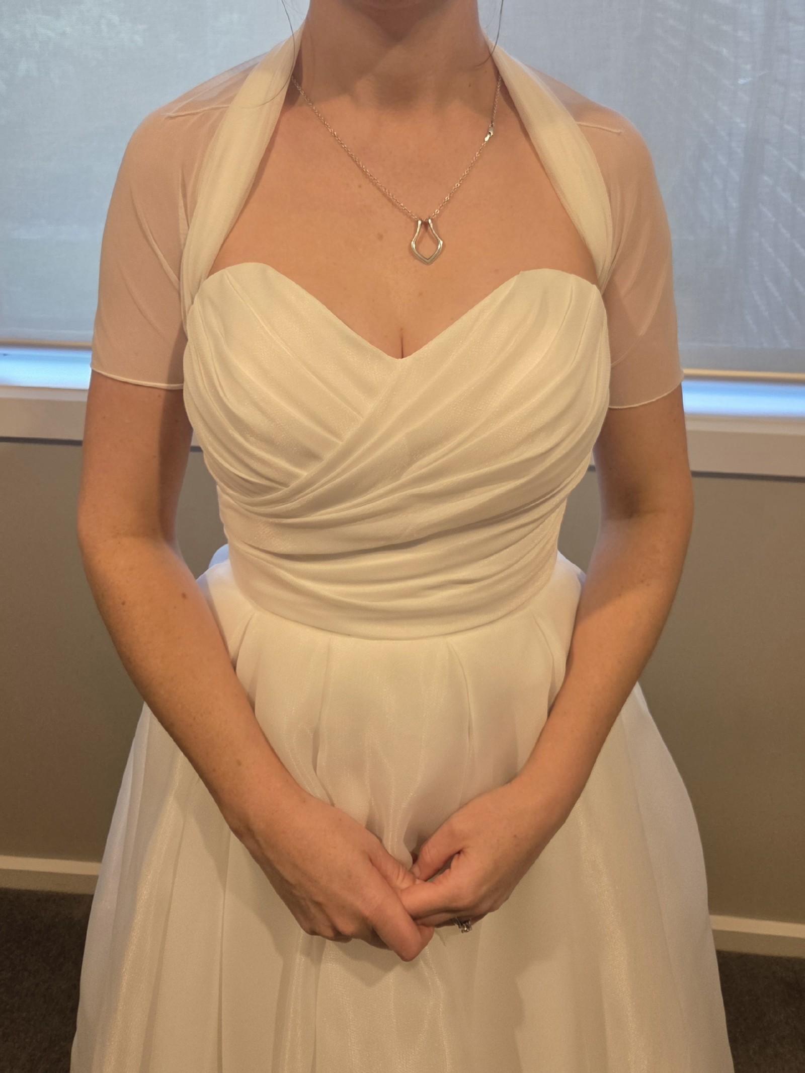 Brand new, never worn. I bought this as a reception dress in case my other dress got dirty/rained on etc but I never ended up needing it. The skirt is fun to twirl in, kind of wish I got to dance in it! Detachable spaghetti straps included, as is stretch tulle bolero. I hope someone gets to enjoy this dress!!!
