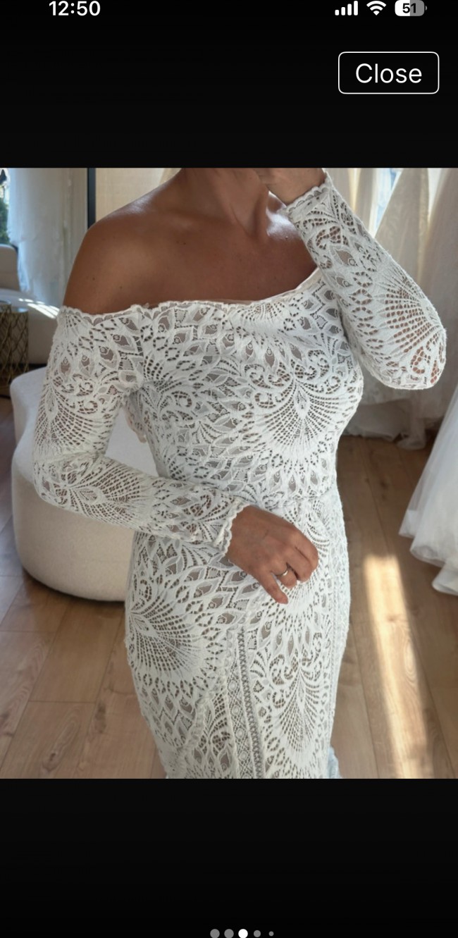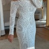 Stretch dress for extra comfort Long sleeve lace Ivory/chai Medium 12-16 Button back with trail In excellent condition