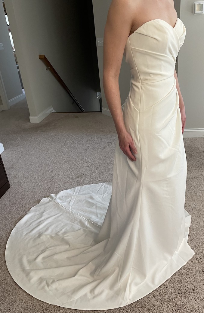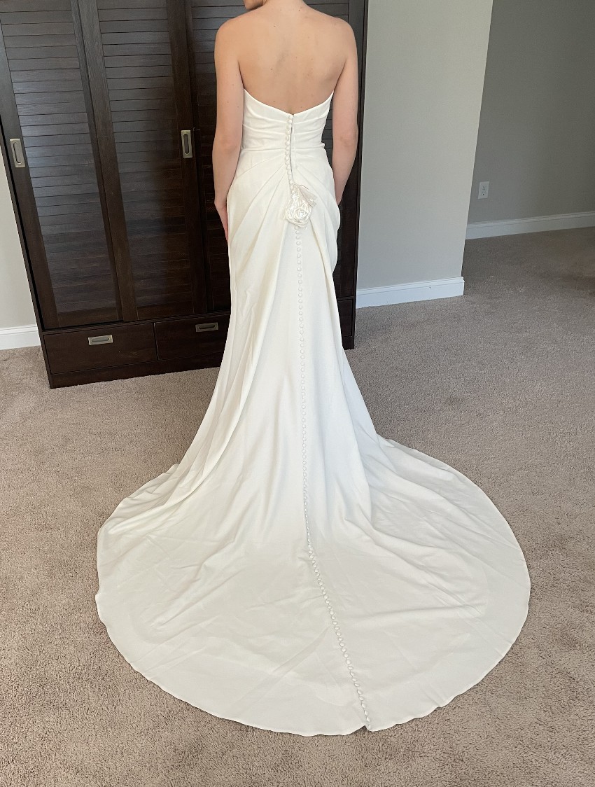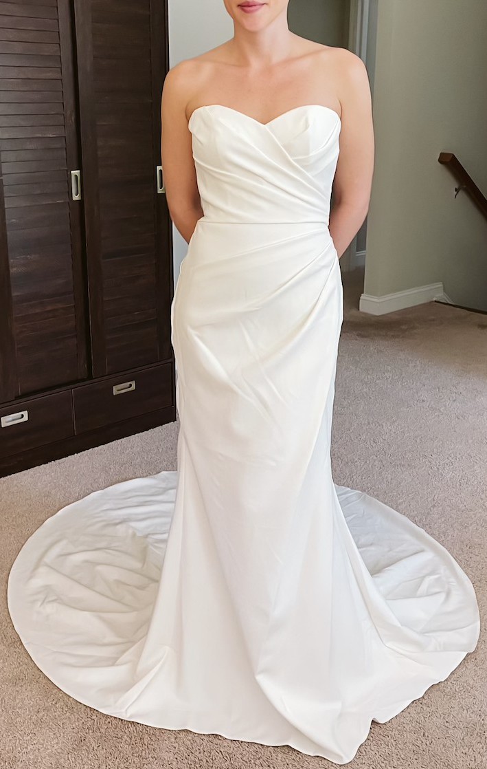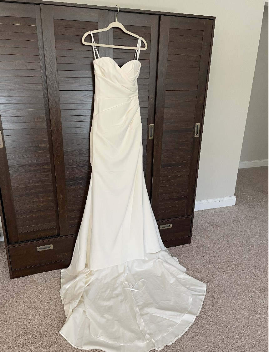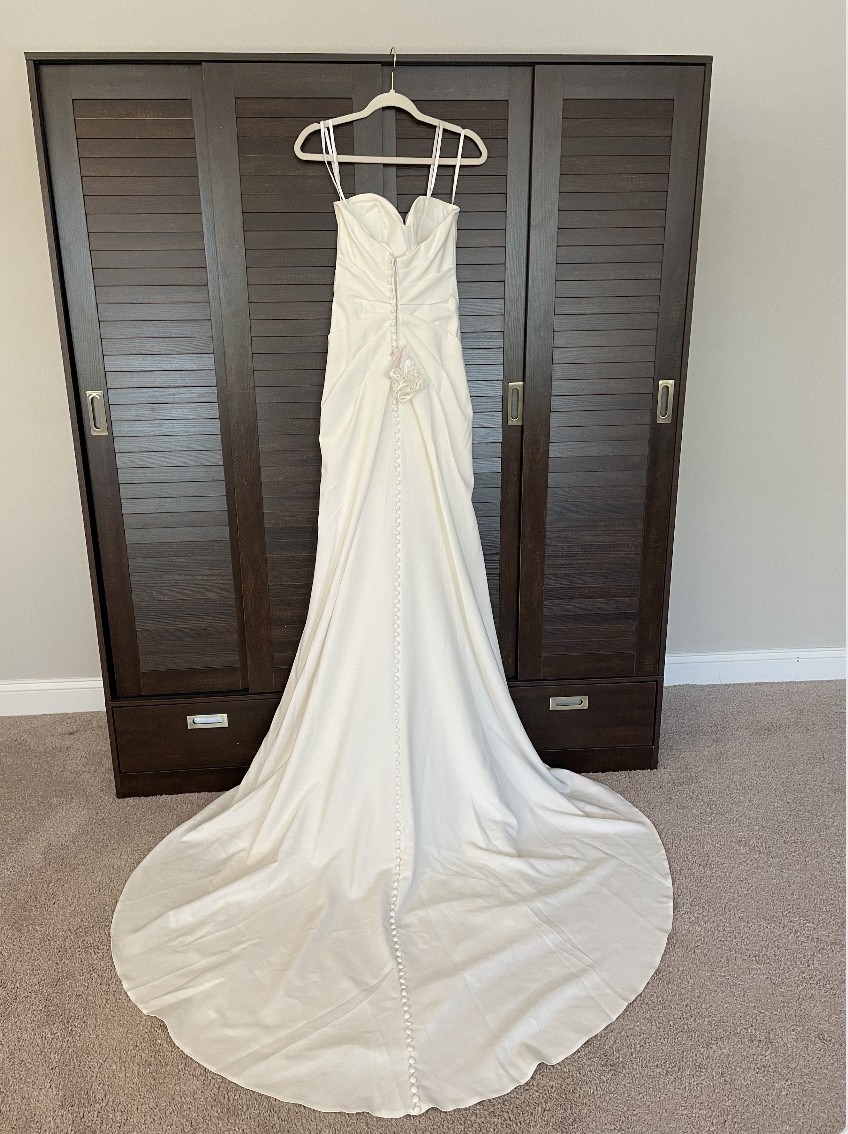 Whether you envision saying ‘I do’ in a chic venue or a picturesque outdoor setting, this versatile gown reflects grace and sophistication. Its size 4 fit ensures you’ll feel confident and comfortable on your special day, allowing you to focus on what truly matters: celebrating love. With this exquisite dress, you will transform into the radiant bride you’ve always dreamed of being.
