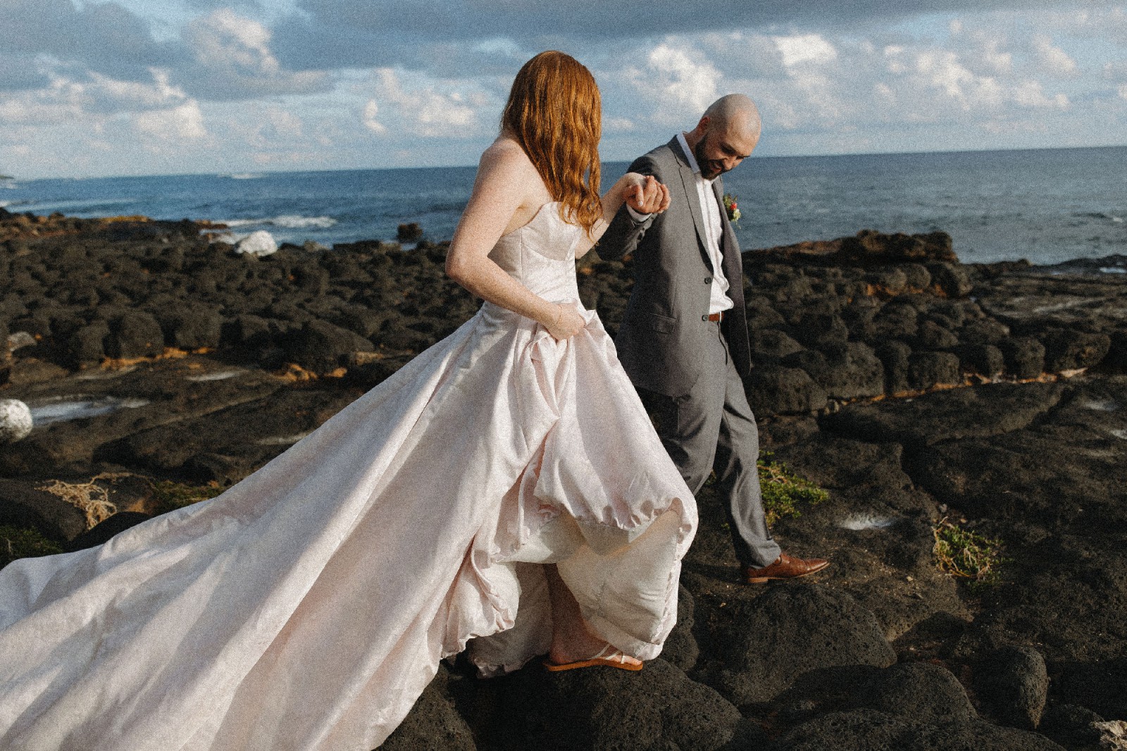 Perfect for a bride wanting a modern, elegant gown with a soft pop of color.