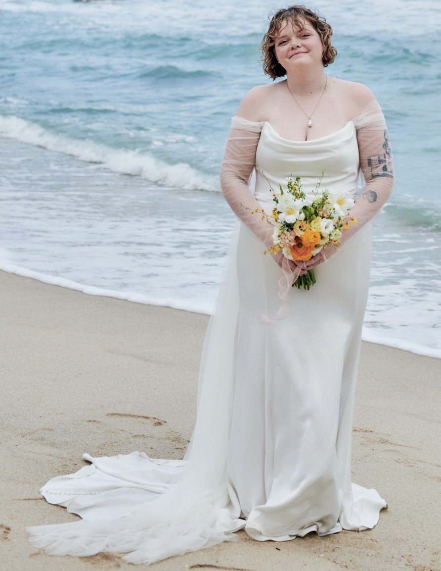 This Olivia dress by Jenny Yoo was the perfect choice for my special day. The fit and flare silhouette hugs in all the right places, accentuating curves while allowing for effortless movement. The strapless neckline lends an elegant touch, and the low back adds a hint of allure that made me feel absolutely stunning walking down the aisle.