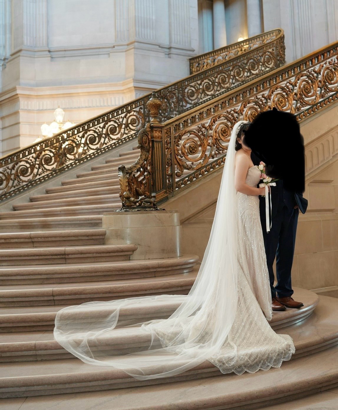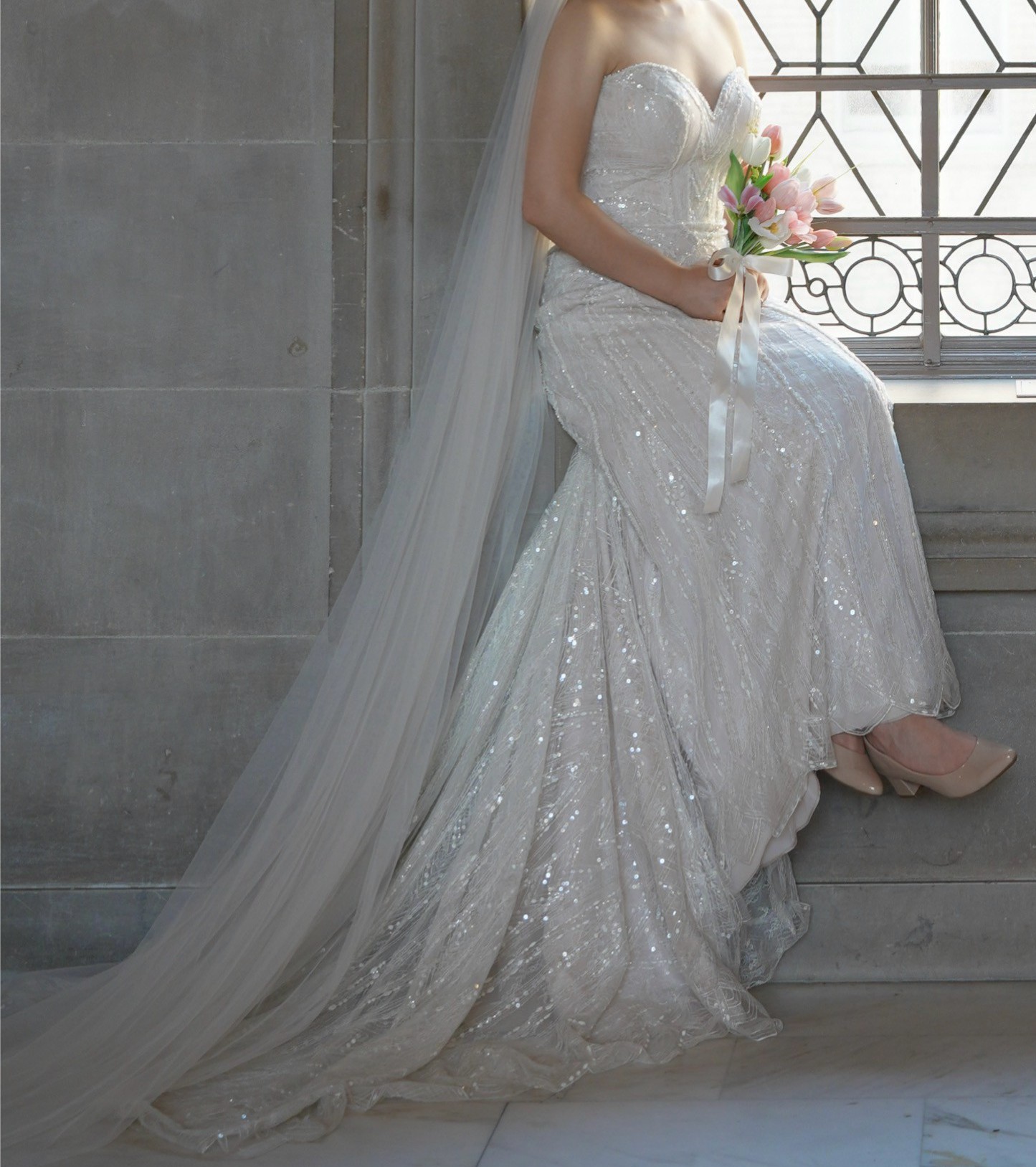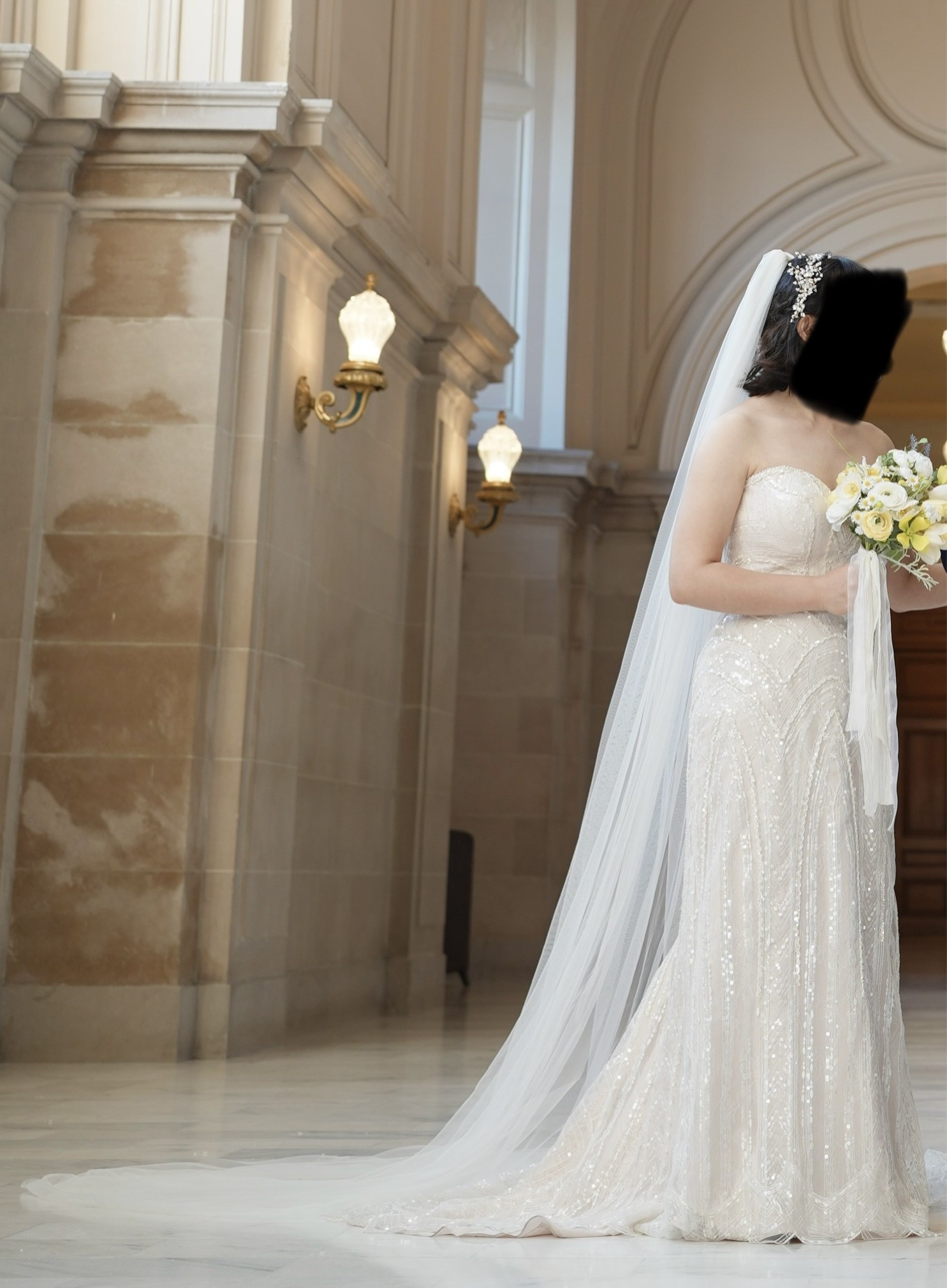 I buy this dress was just for the sf city hall photoshoot, I have another dress for my wedding at a church. This dress is more glam look that suitable for the city hall vibes.