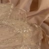 It’s a high-ended wedding dress with 3 layers of different material. With pearl sequins, lace and then the inner layer showed on the video.
