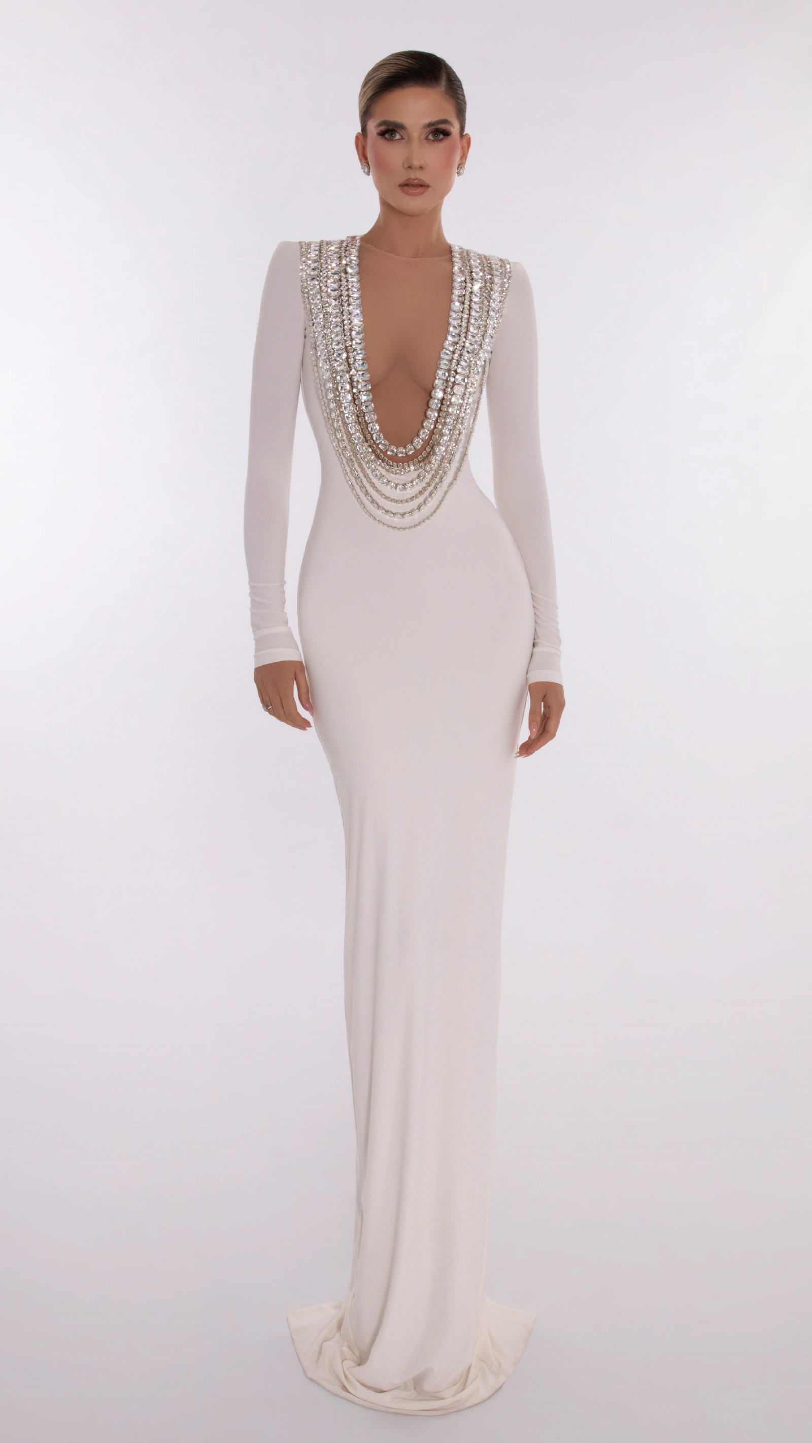 Albina Dyla, Embroidered Neckline White Dress