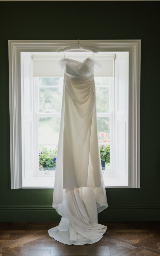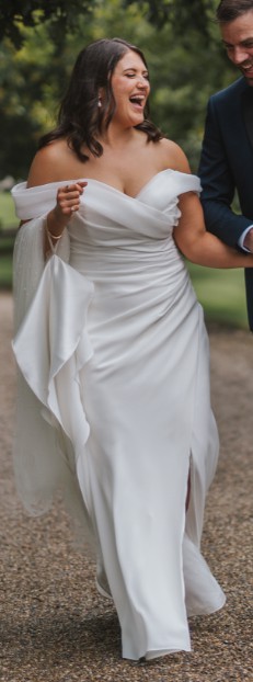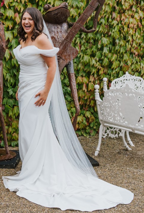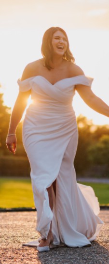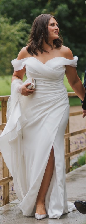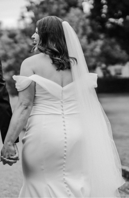 The ankle-length design offers a modern twist, allowing for easy movement and showcasing your footwear, whether you choose delicate heels or stylish flats. The mid-back detail is both flattering and practical, ensuring you feel secure throughout your special day. What truly sets this dress apart is the exquisite beading that catches the light and adds a hint of sparkle, making you shine in every moment. Additional beading was added down the back of the bodice to add a further touch of class.