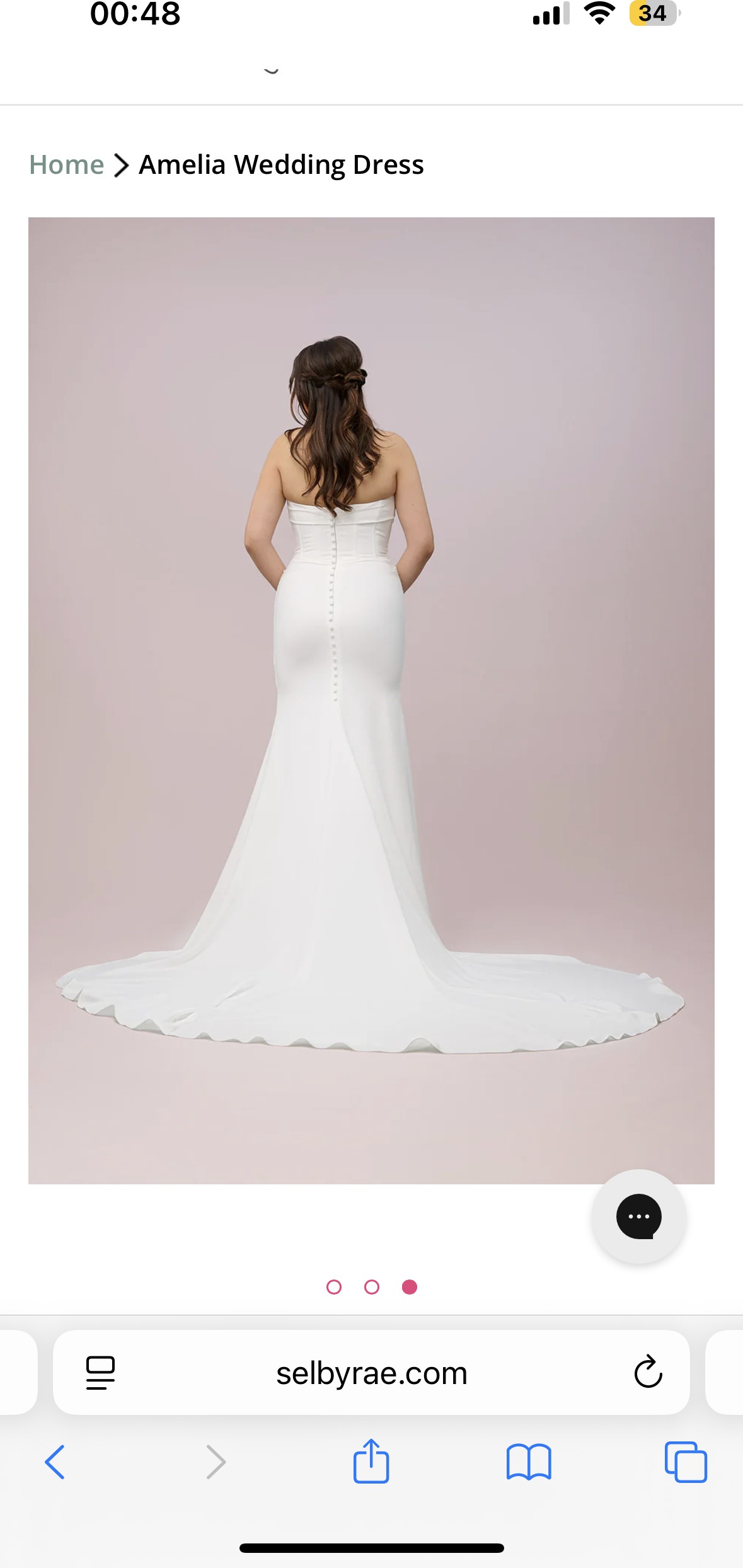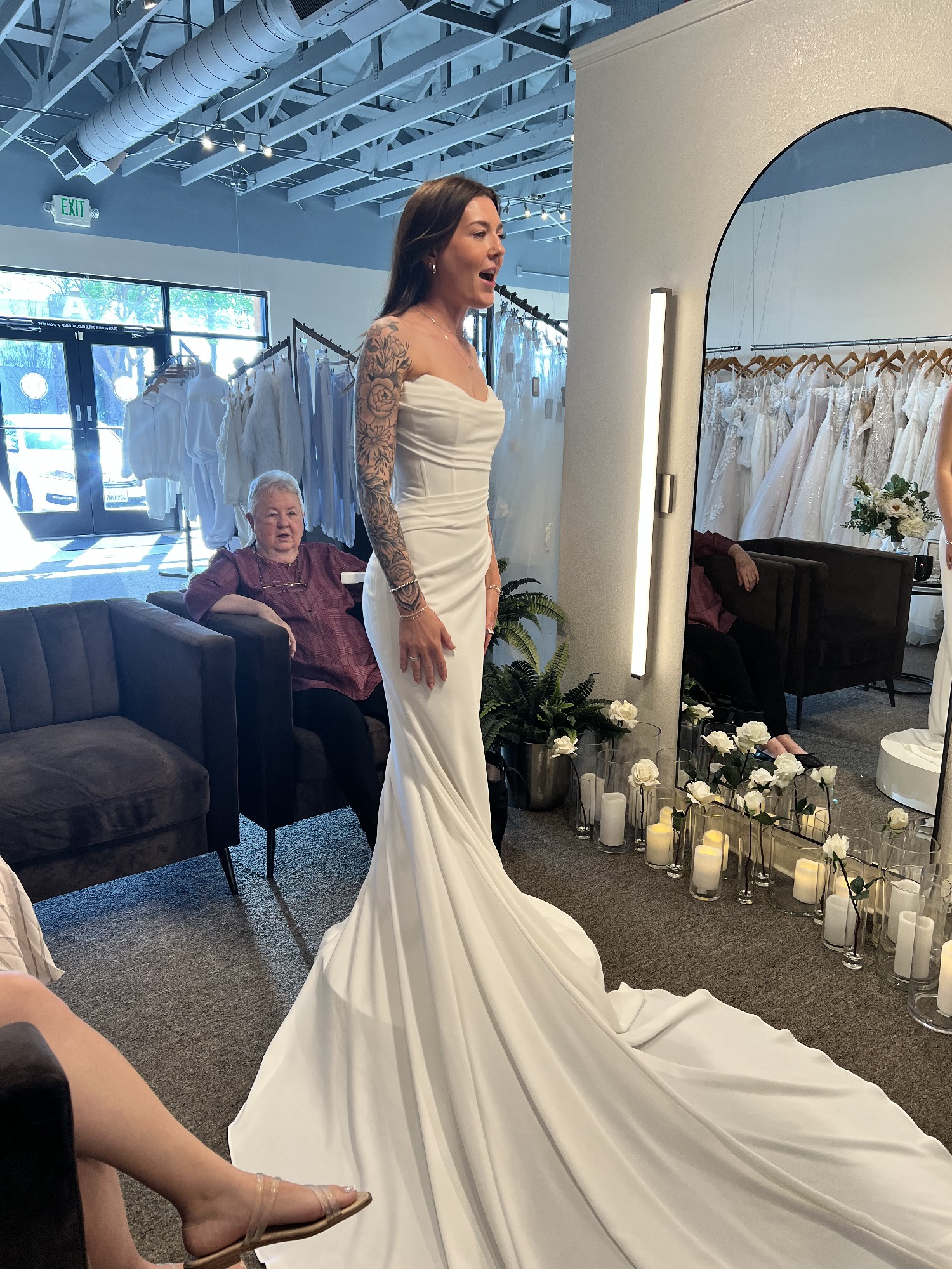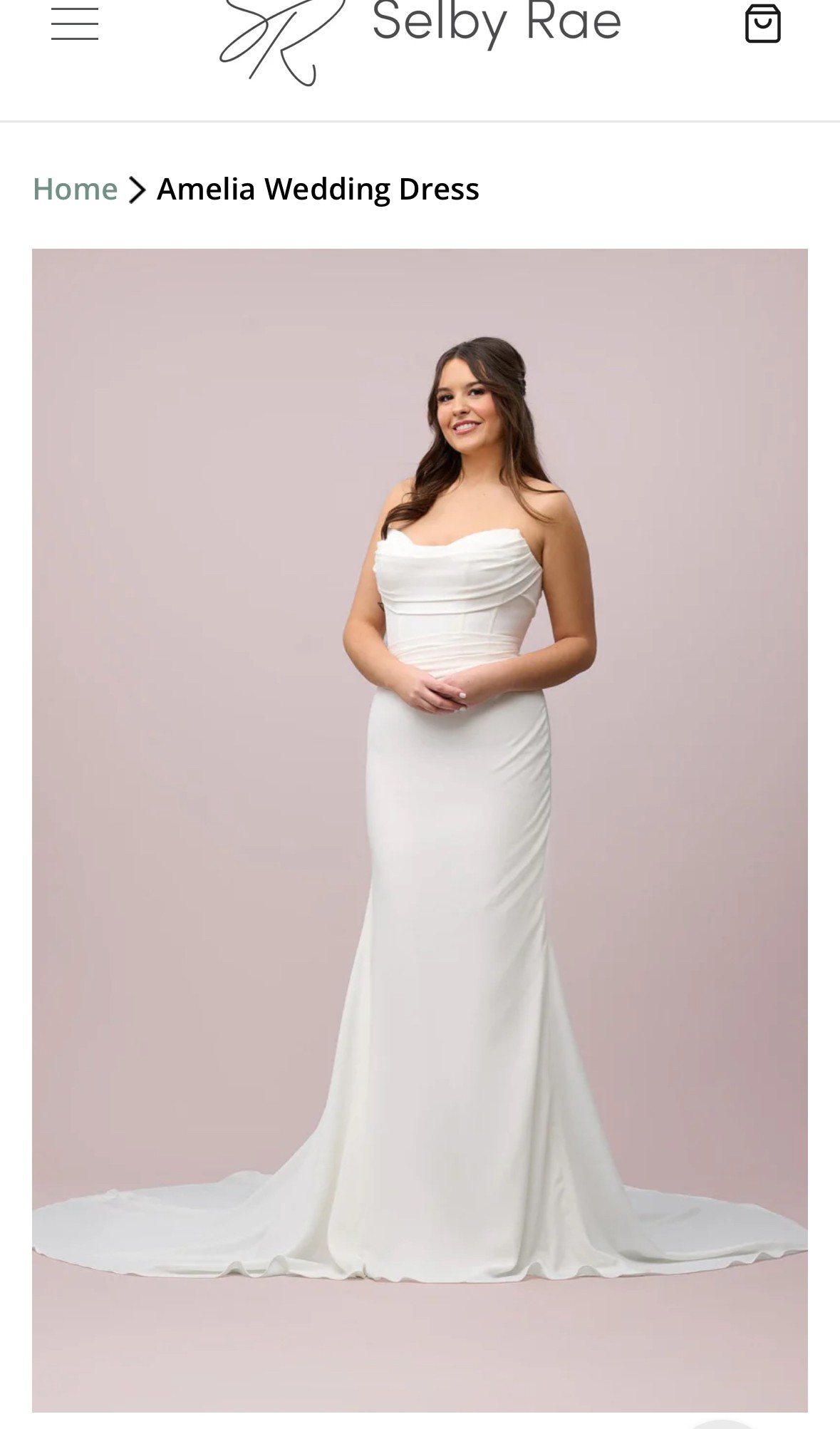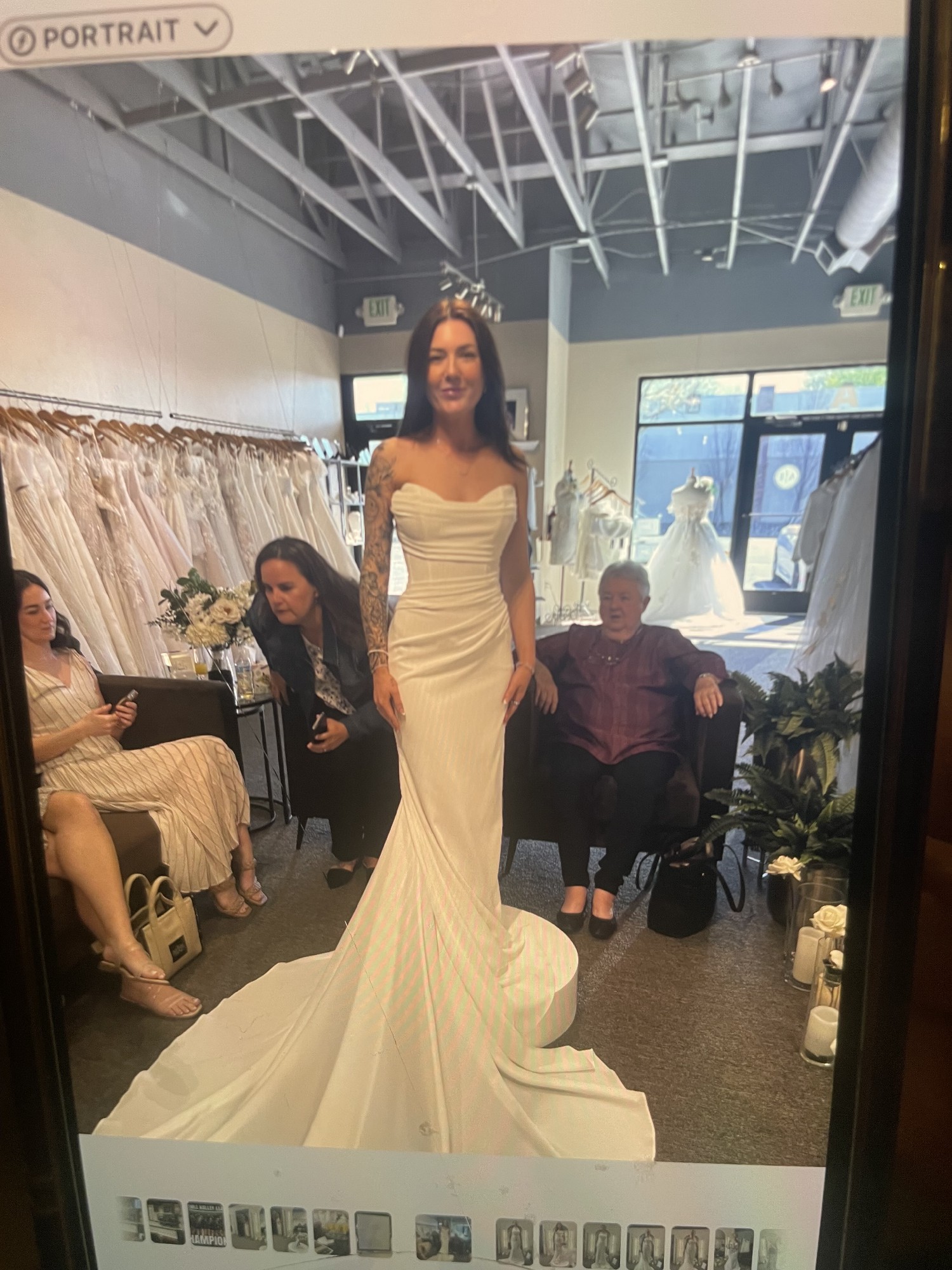 Beautiful brand new Shelby Rae Amelia dress. It has a flattering bustier bodice with soft crepe draped over it. Brand new with no alterations made!