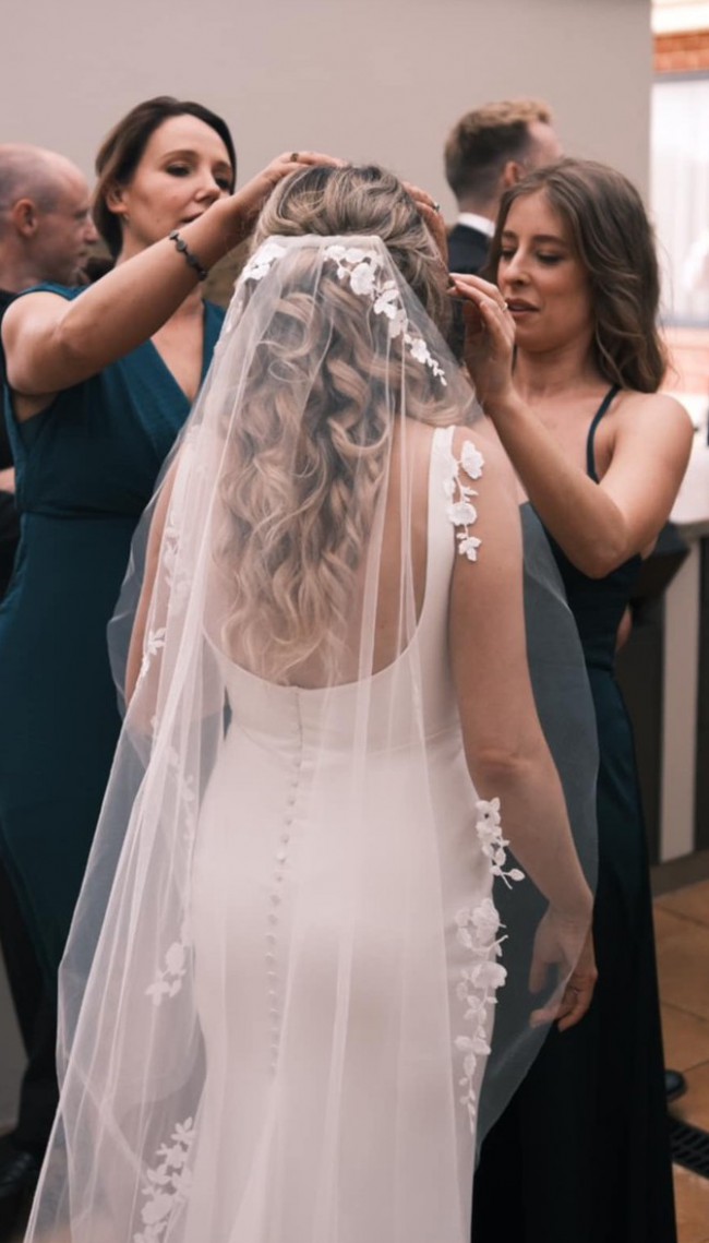 The dress is named ‘Grace’ and is iconic, timeless and classy. This stunning dress has been professionally Dry cleaned by wedding dress specialists. It’s Light weight and comfortable. I was not restricted in anyway and the fabric allowed me to move and dance the day away. I’m including the ‘Pierlot Veil’ as the two belong together and just like a married couple should never be parted. :)