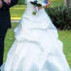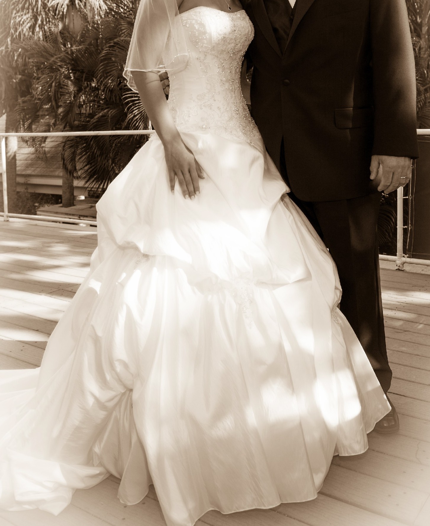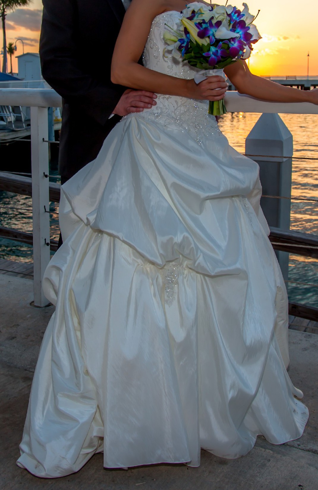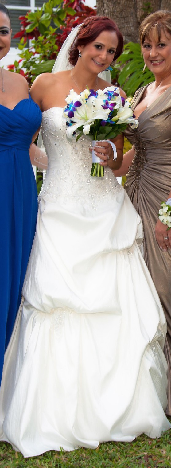 This exquisite Victoriana dress by Maggie Sottero is a true masterpiece that made my wedding day feel like a fairy tale. The fit and flare silhouette beautifully hugged my curves, while the stunning ivory fabric glimmered in the light, creating an ethereal look that dazzled everyone in attendance. The strapless design offers a romantic and elegant neckline, perfect for showcasing your bridal beauty.