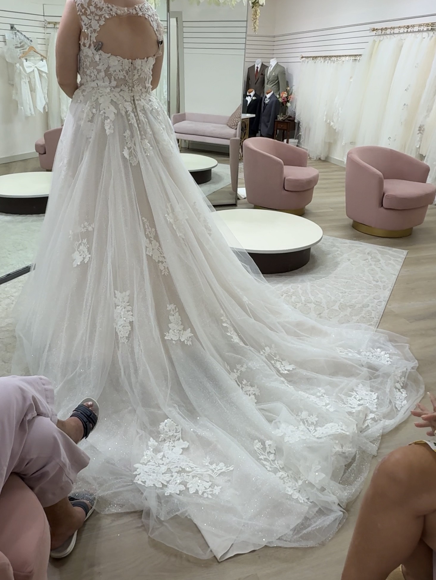 This dress is gorgeous and I fell in love with the sparkle tulle layer but the more my vision for my wedding has come together, the less this dress fits my vision.