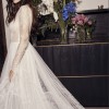 Sheer long sleeve sequin lace fabric boho A-line gown
