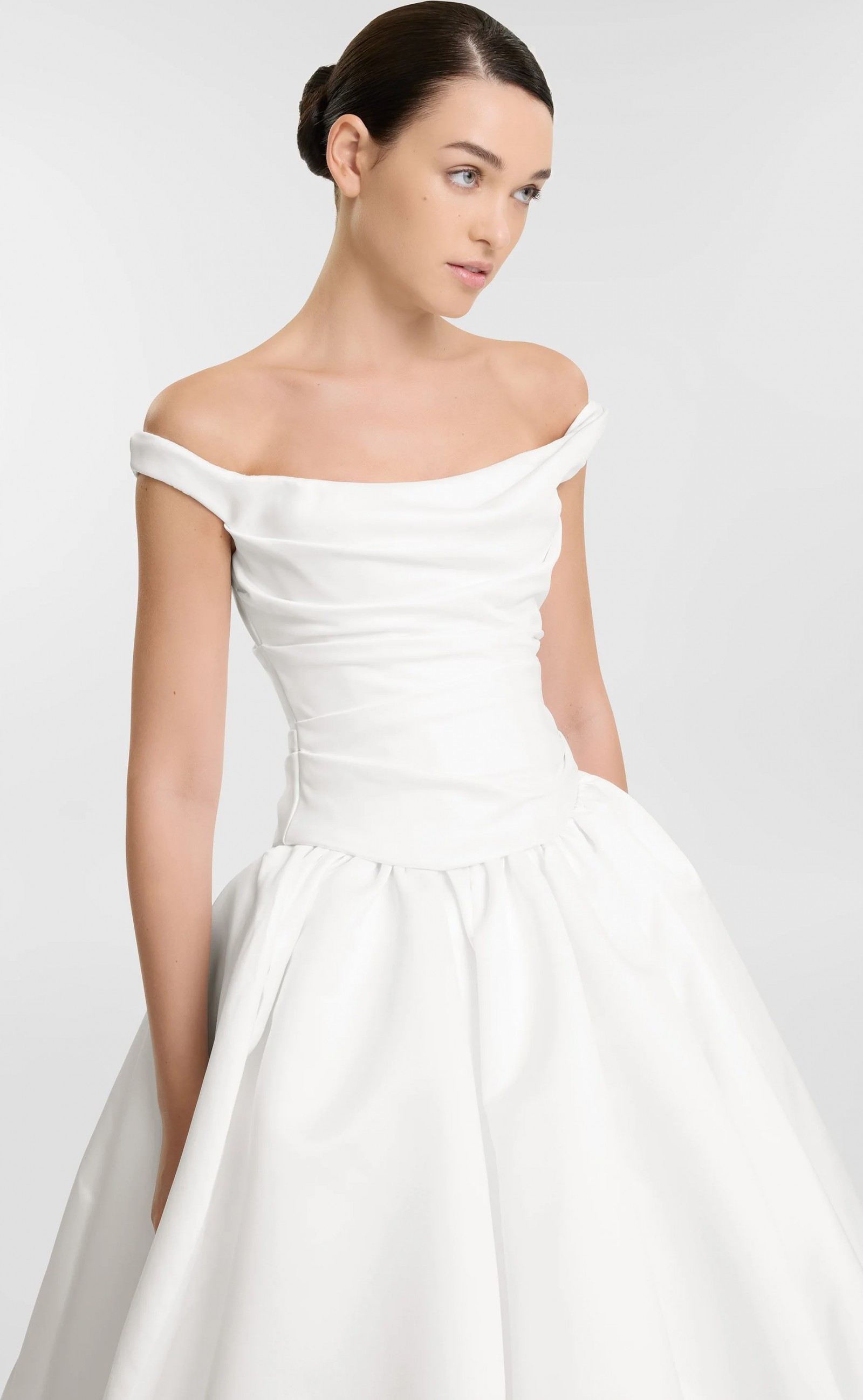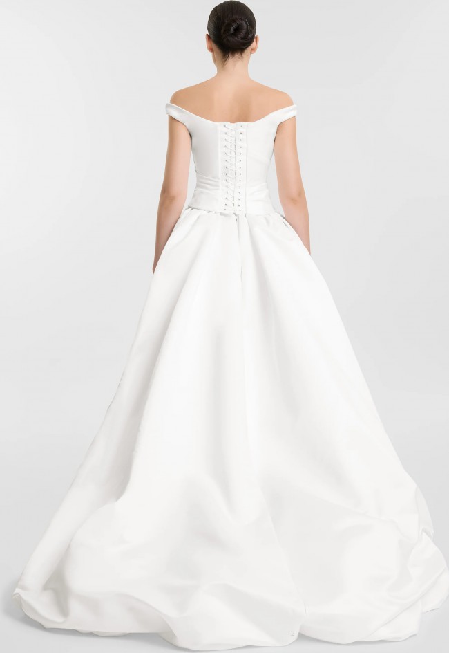 Nevada, delivering a serve of organic draping with a side of je ne sais quoi. Cut from luxe duchess satin, off shoulder Nevada corset delivers structure and effortlessness at the same time. Fastened using lace for the perfect fit, pair Nevada with the Opal skirt for a high drama aesthetic.