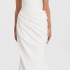 Sunday best becomes your lifetime best, with Sunday, a study in the art of draping. A true celebration of the female form, Sunday's structured bodice and fresh sweetheart neckline cuts an hourglass figure. A luxe, heavy crepe is directionally and effortlessly draped across the body to create a statuesque, shapely silhouette for instant screen siren energy.