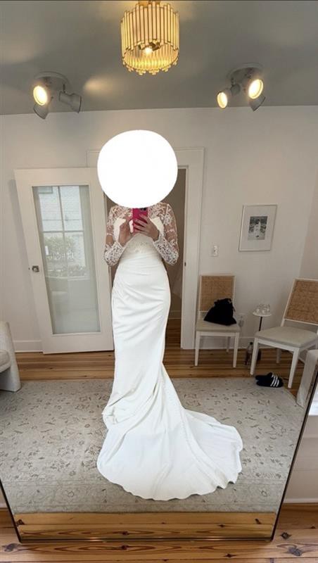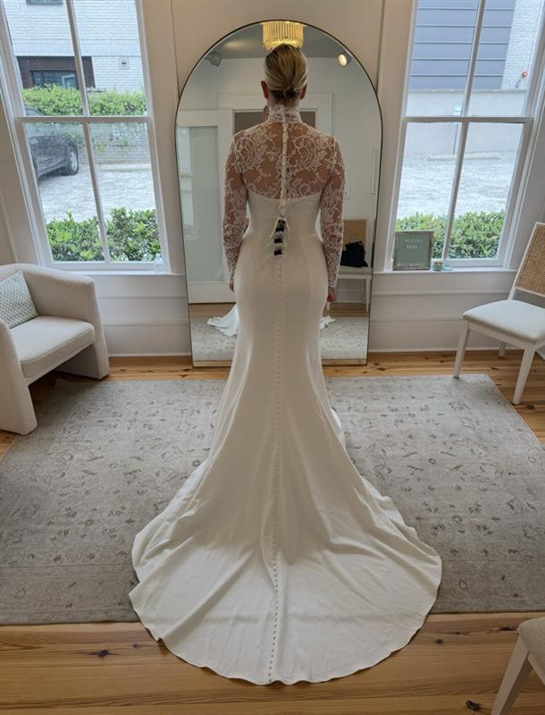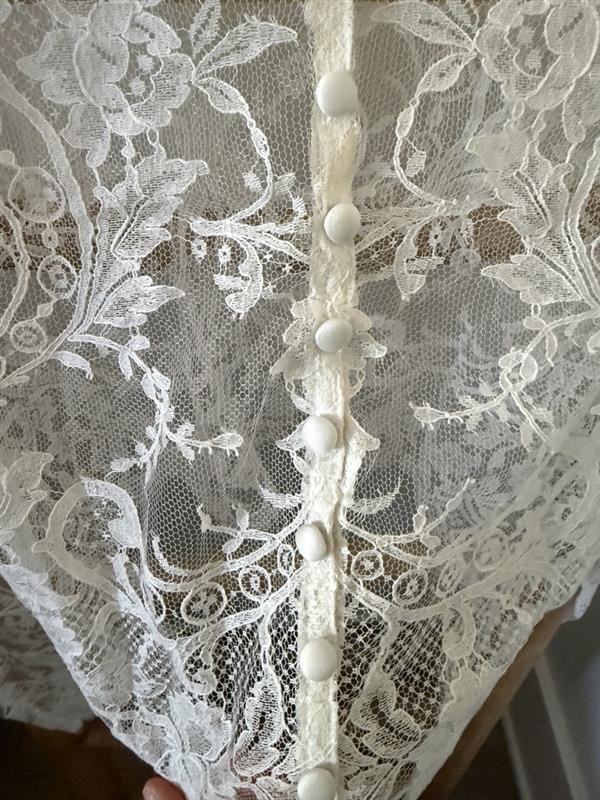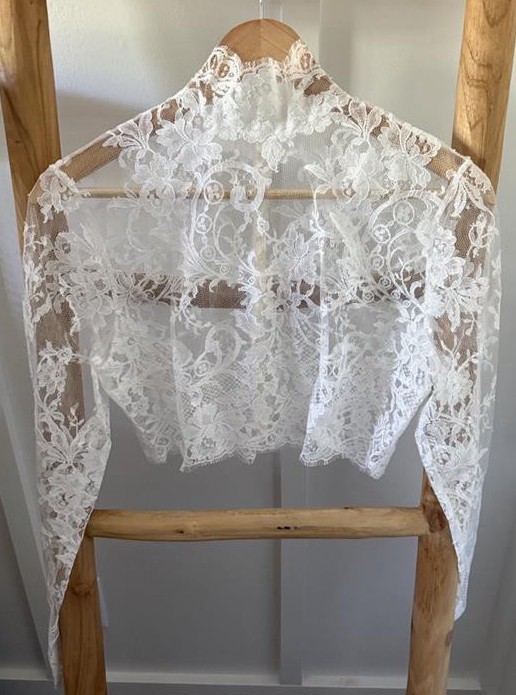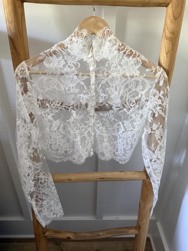 Gorgeous full-lace long-sleeve ivory bolero by local Charleston, SC bridal designer, Kate McDonald. Buttons all the way down the back, with a high neck. Never worn. Purchased from The White Magnolia in downtown Charleston.