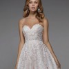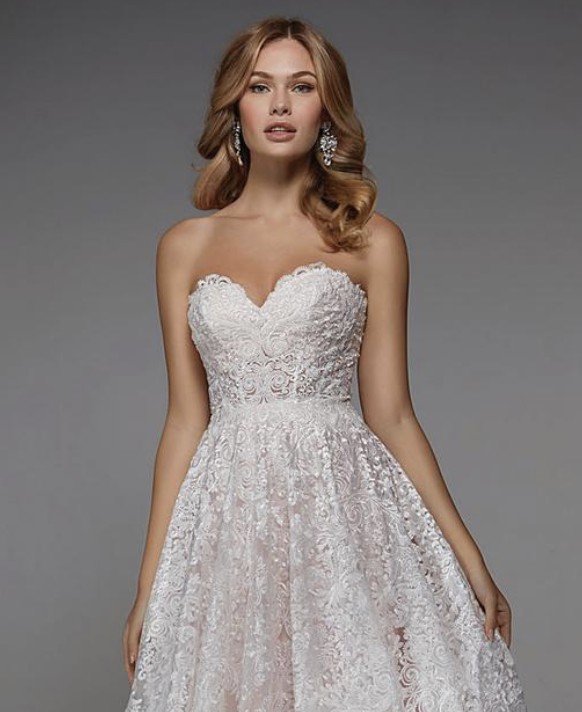 Alyce Paris 7033 A-line wedding dress is styled in allover lace, featuring a semi-sheer bodice with a strapless sweetheart neckline and mid-rise back. The seamed waist gives way to the ball skirt and horsehair hem.
