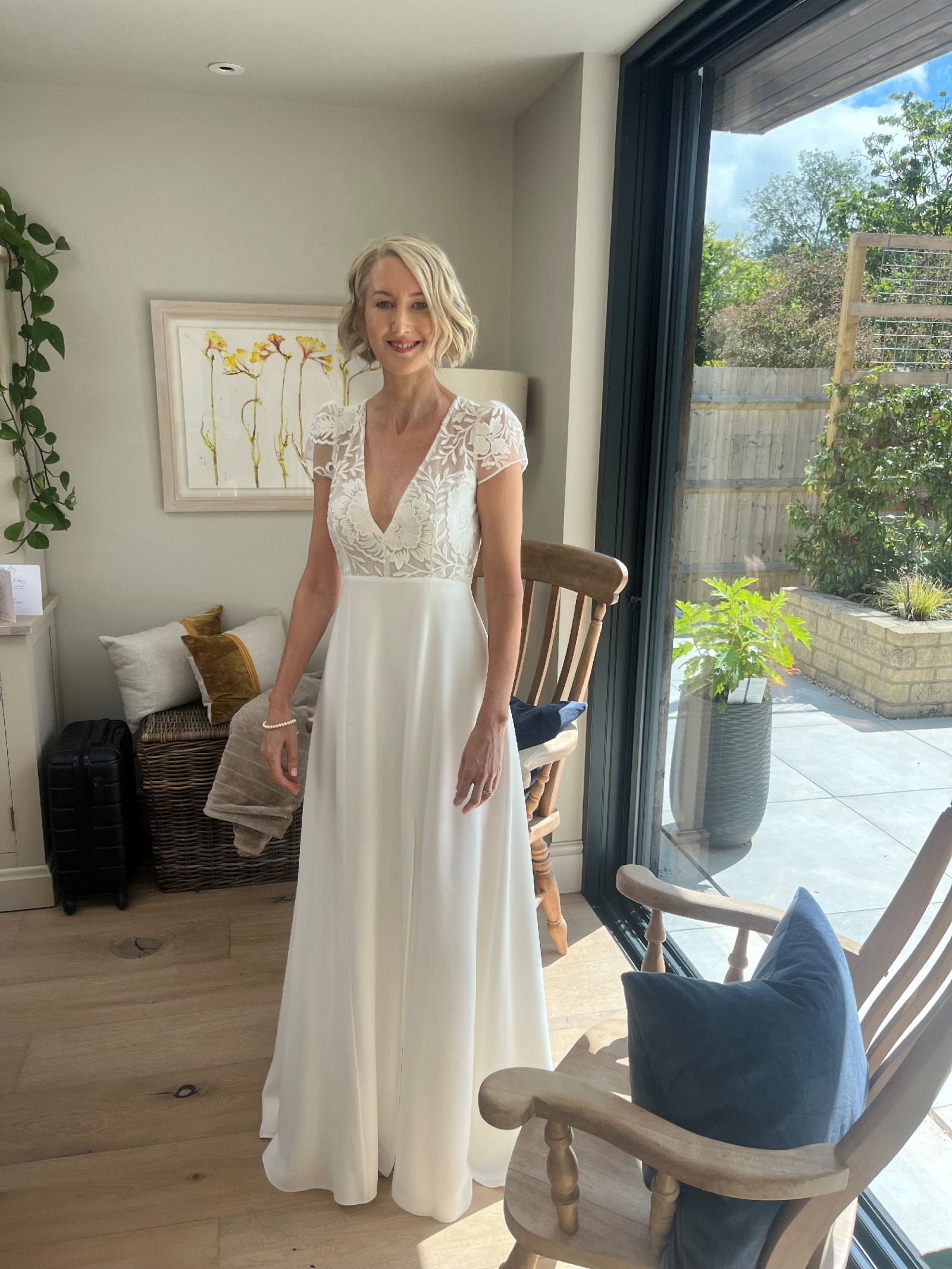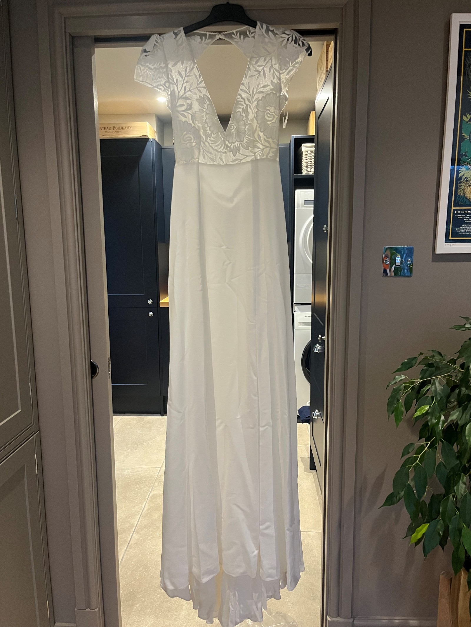 The dress was bought from The Little Bridal Boutique at the end of 2024 and worn for my wedding in June 2025. I absolutely love this dress, it was very comfortable and easy to wear. It was dry cleaned straight away by Terrington Burchett. The dress comes with its original Rembo protector and is still boxed in the Terrington box.