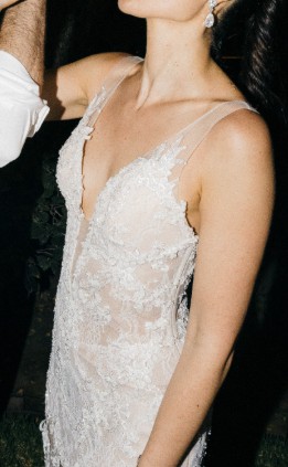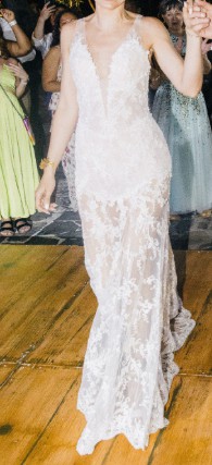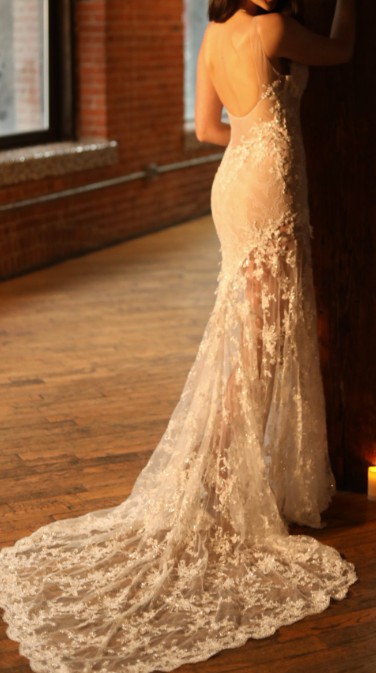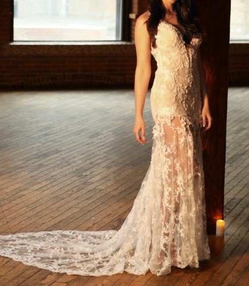 My loss is definitely your gain. I purchased this dress from another bride and unfortunately it did not fit me. It is very romantic and sexy, the sheer portion on the bottom is so flattering on your legs. There are two other listings for the same dress (different sizes) and they are priced higher.