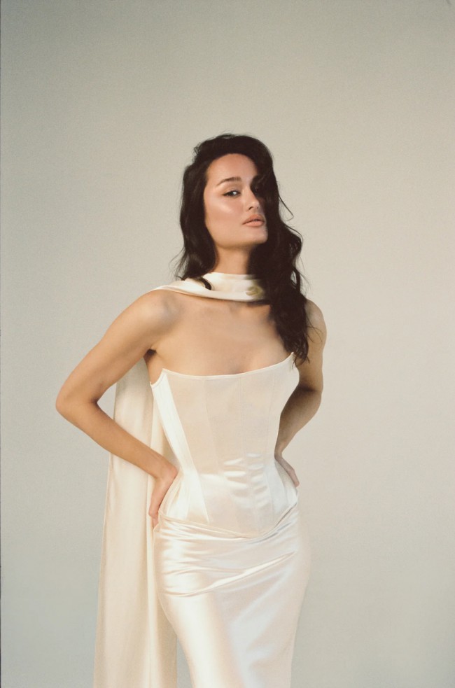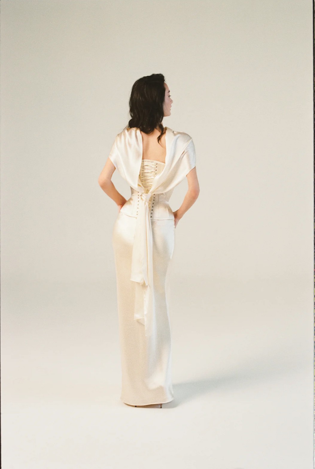 Corset, Skirt & neck scarf set in warm ivory/champagne. Fits Size 8 - 12.