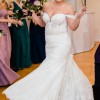 At the time, in the photos, I was approx 170lbs, and a size 12 in street clothes. I wore a 36/38 B cup, but could fit a C. The dress was purchased at a bridal 16, based on the chart measurements, but needed to be taken in at the bodice/cups, hips to fit approximately 12/14 size and a small amount in length in the front. No alterations were made to the train. The dress does have boning in the bodice.