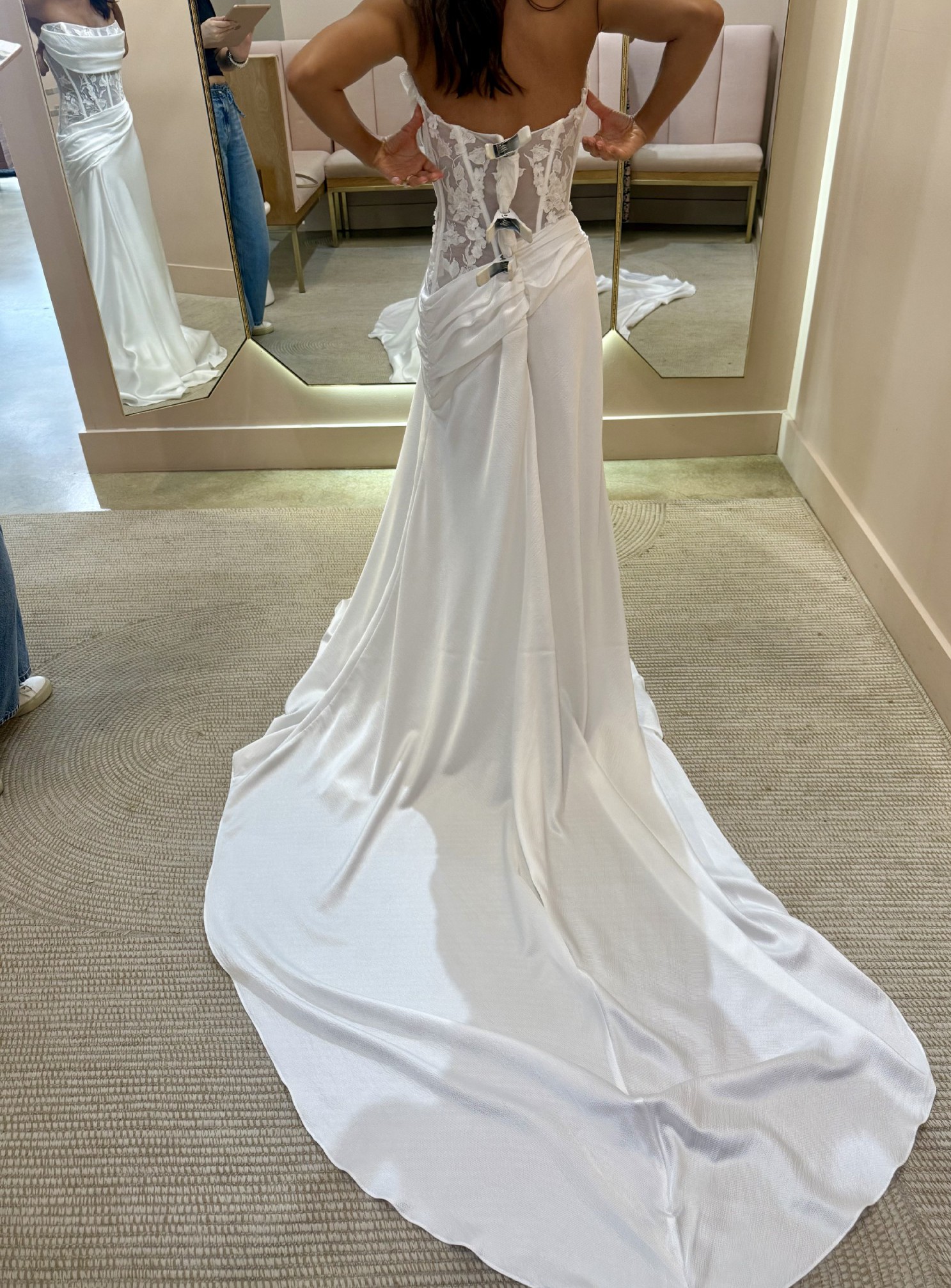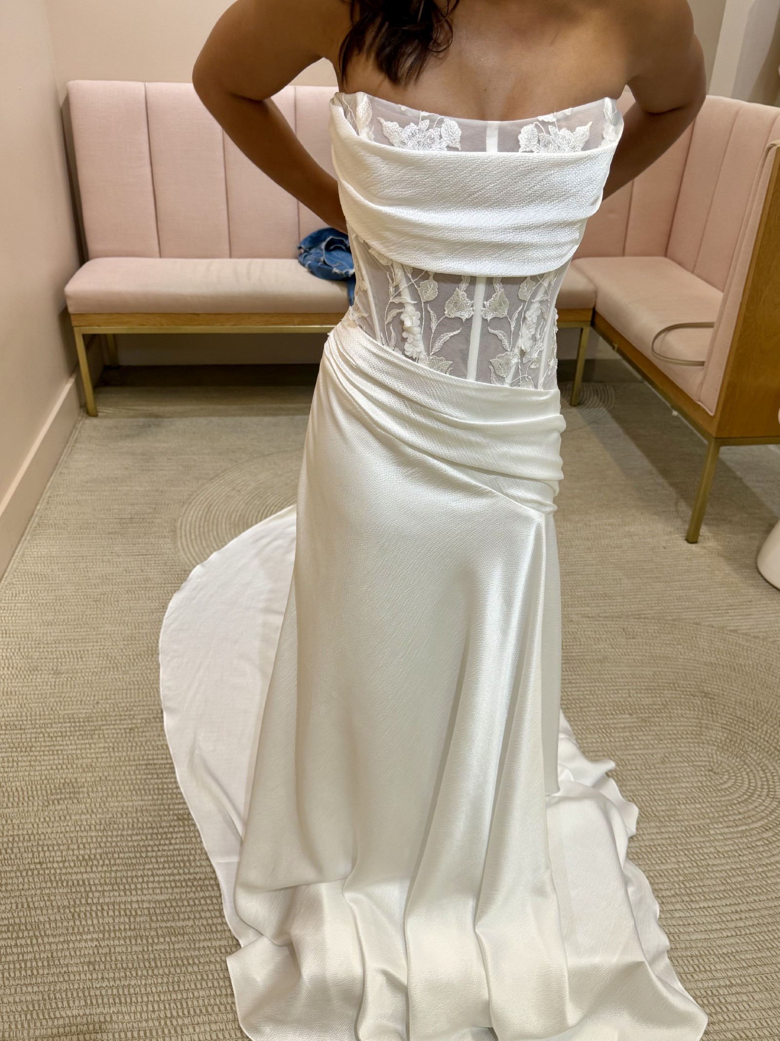 I included pictures of both myself and of the model from designer pages, as the dress I tried on was at least four sizes too big on me.