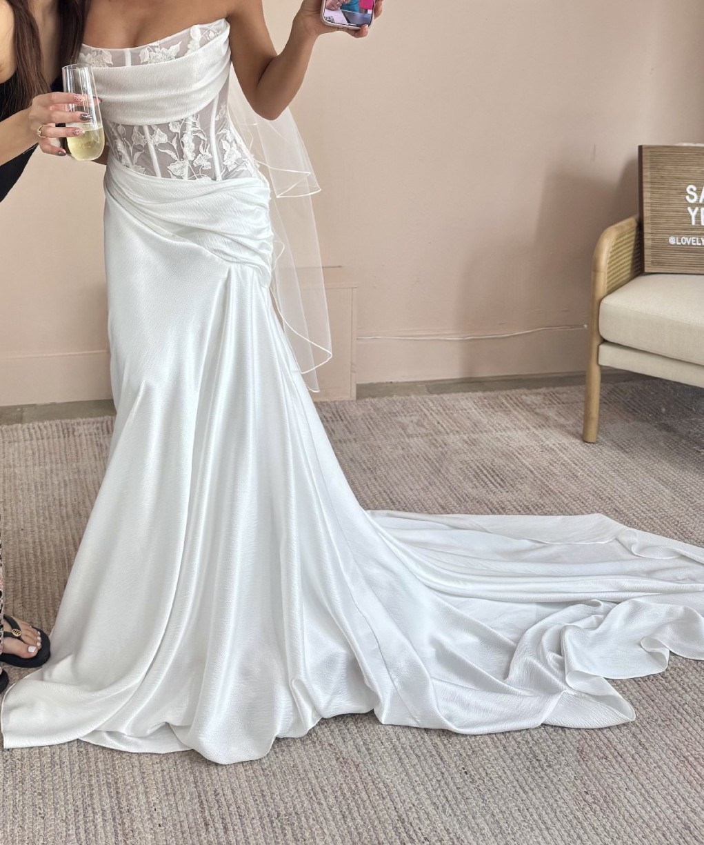 BRAND NEW, hasn’t even arrived yet, SAINT Bridal dress. This is a unique, gorgeous, comfortable, and lightweight bridal gown that photographs beautifully in the natural light. While this dress is beautiful, I decided to get a dress that feels more like me.