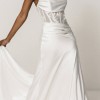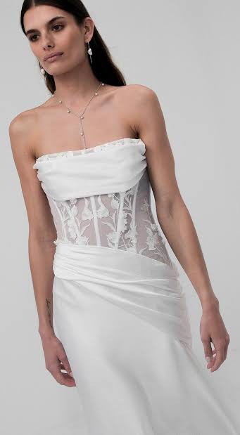 A gown made for our audacious romantics, Reine is crafted to harmonize the essence of softness and structure. Hammered satin and delicate lace wrap around the body, revealing exposed corsetry that adds an element of allure, while accentuating the exquisite vine detailing on our exclusive lace. Reine’s daring asymmetrical skirt is carefully hand pleated to elegantly frame the midsection, revealing a striking silhouette for our bold brides. With the option of lined bodices for added comfort and choice, Reine provides a canvas for individual expression.