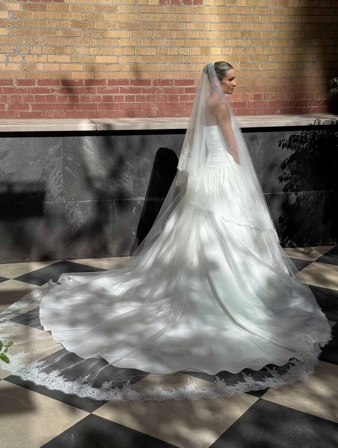 My French lace cathedral veil can be also be purchased separately for $800 CAD ($1,200 value). It’s in mint condition as I only wore it for my ceremony and photos.