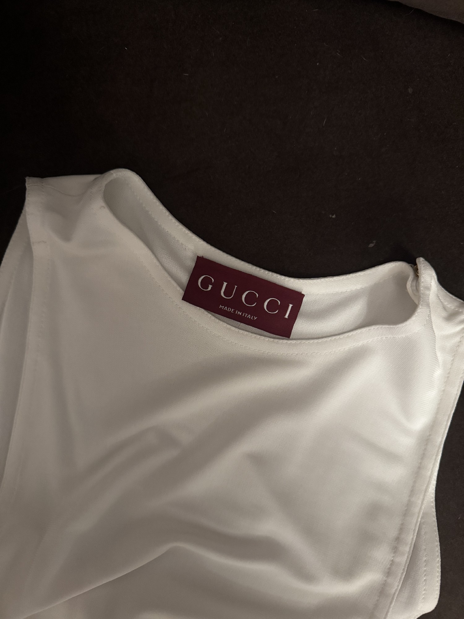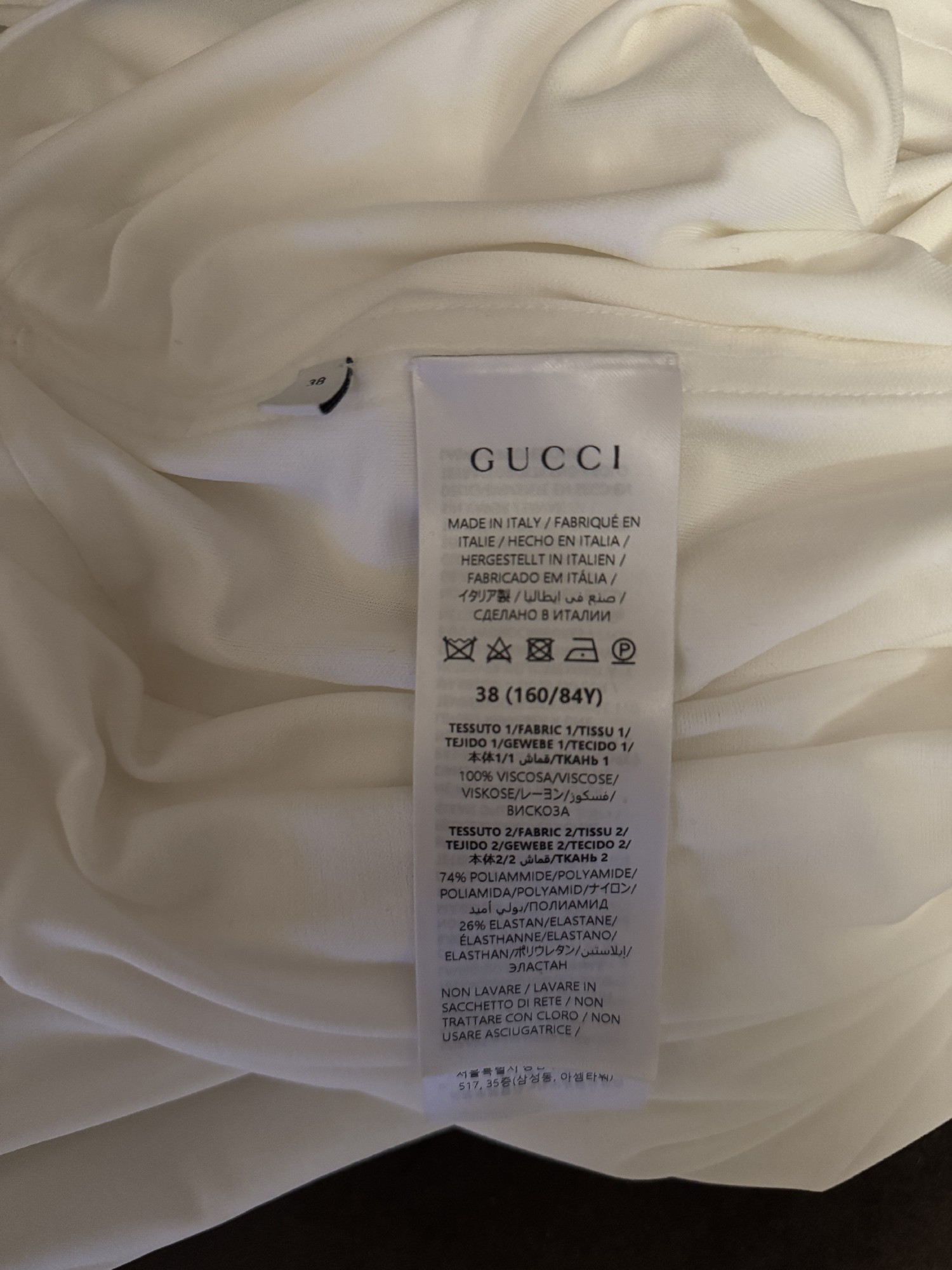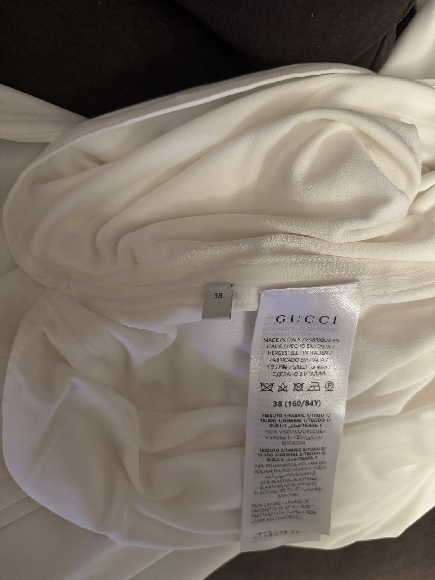 The standout feature of this dress is its daring high slits which offers a glimpse of the legs, perfect for showcasing a pair of stunning heels or adding a touch of flirtation as you walk down the aisle. Crafted with meticulous attention to detail, the fabric drapes beautifully, exuding a luxurious feel that is unmistakably Gucci.