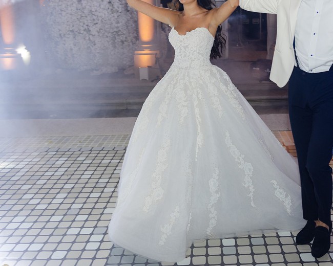 This beautiful custom Reem Acra ballgown is truly one of a kind. I worked directly at the Reem Acra boutique in NYC, and Reem Acra herself handmade the dress with hand-placed embroidered lace and delicate pearls. It also comes with a matching jacket, an overskirt, and a veil, giving you multiple stunning looks in one gown. 💍👰🏻♀️