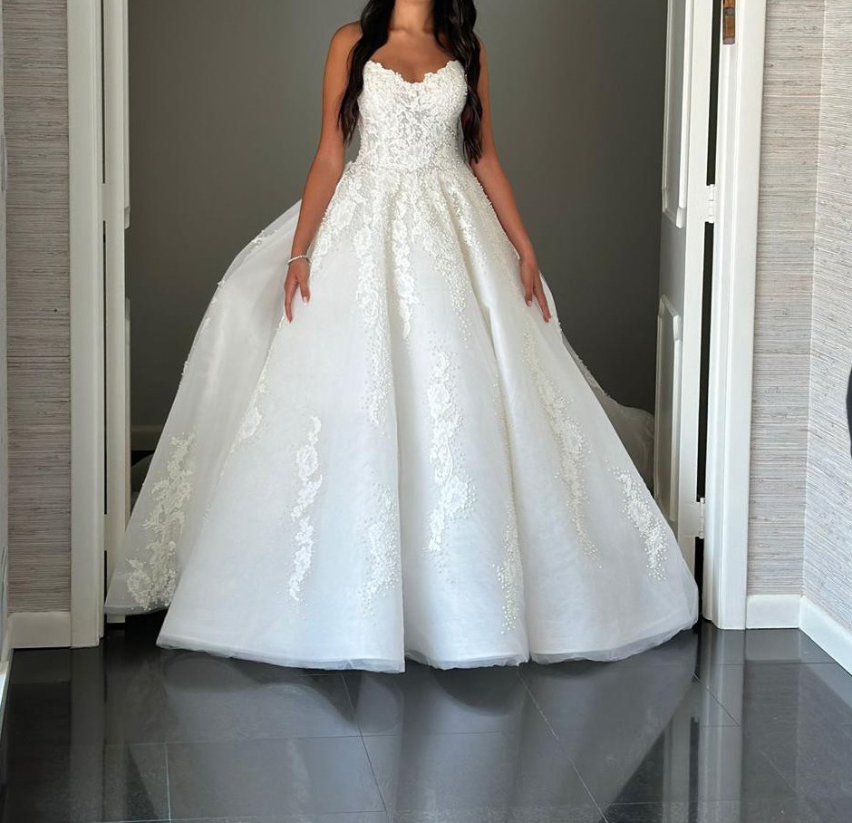The dress has incredible detail, amazing quality, and a timeless style that photographs beautifully and feels unforgettable on your big day.🥹💕