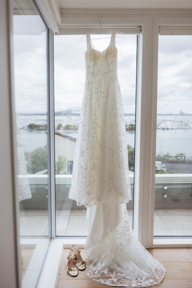 I customised it to have a 100cm train. I bought it a size up and had to bring in the chest as detailed above- this will now fit a size 8 perfectly.