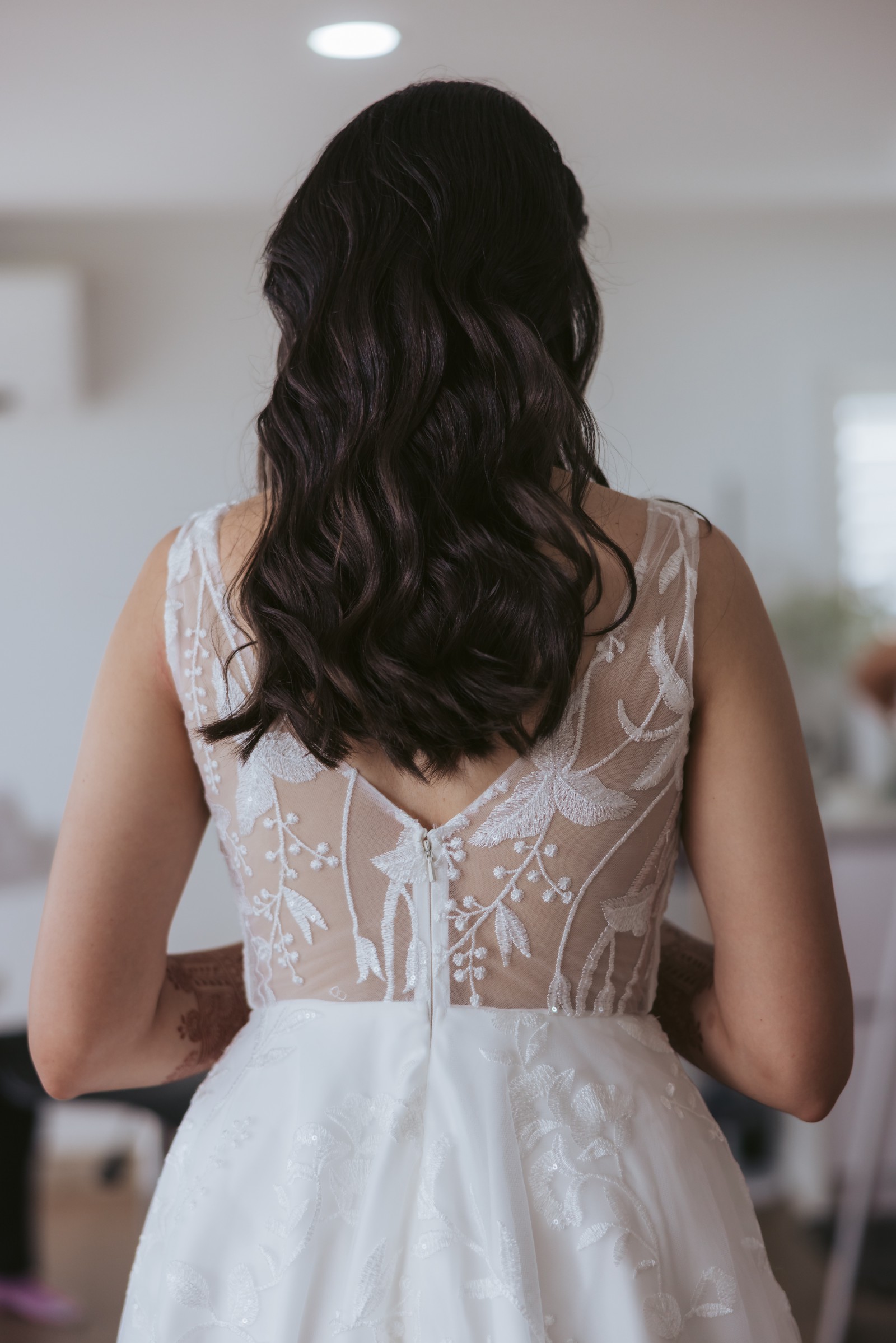 - Straps pulled up, bust and waist taken in