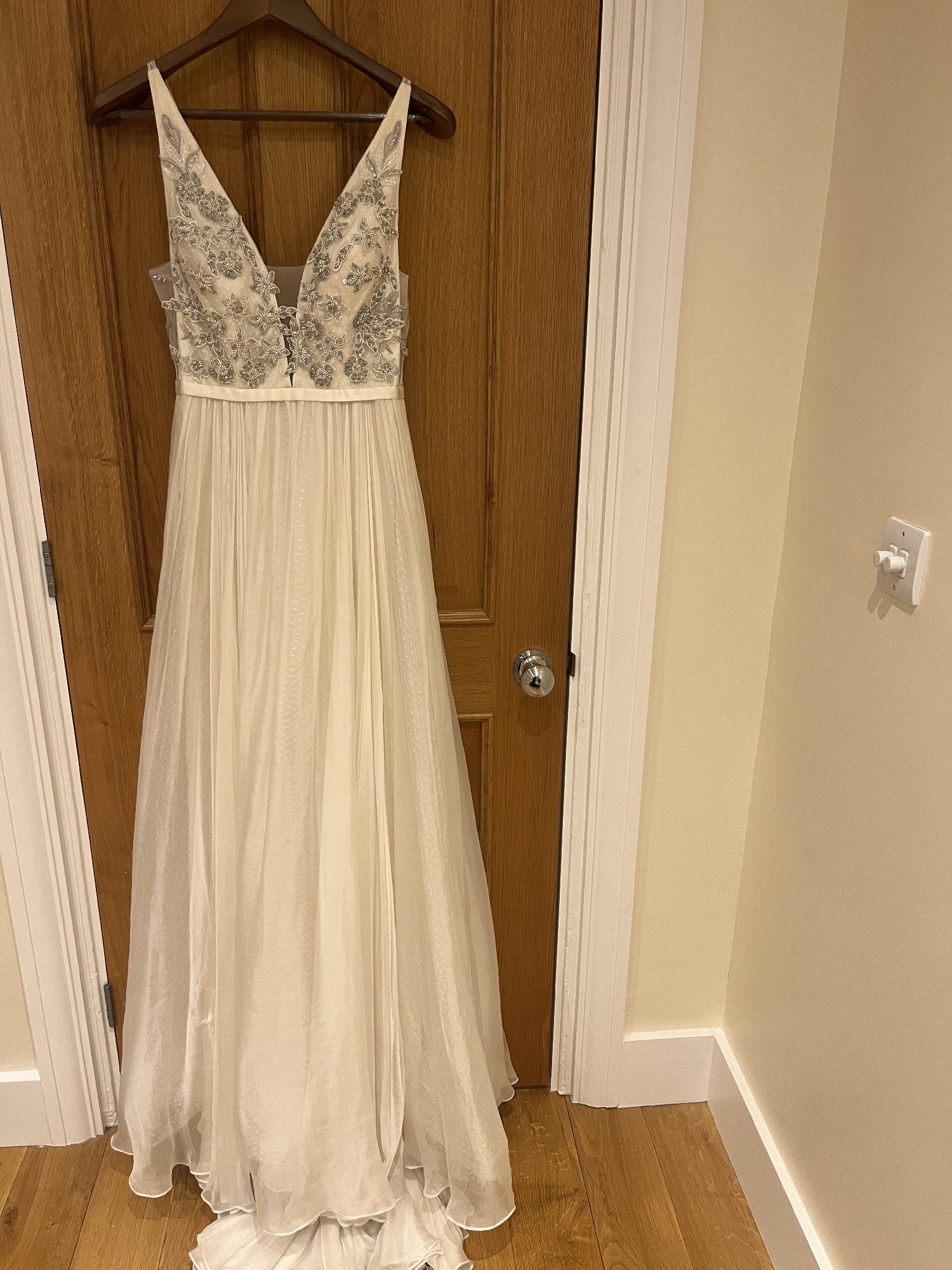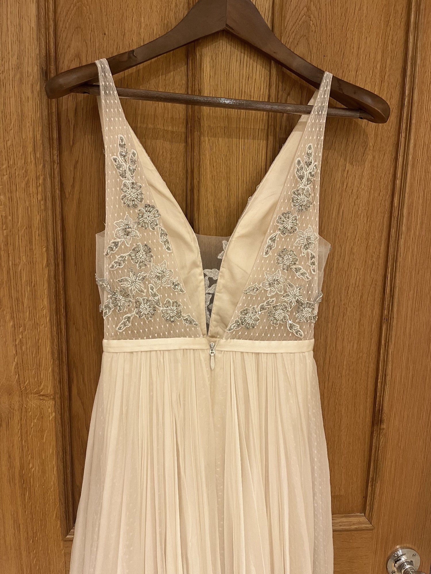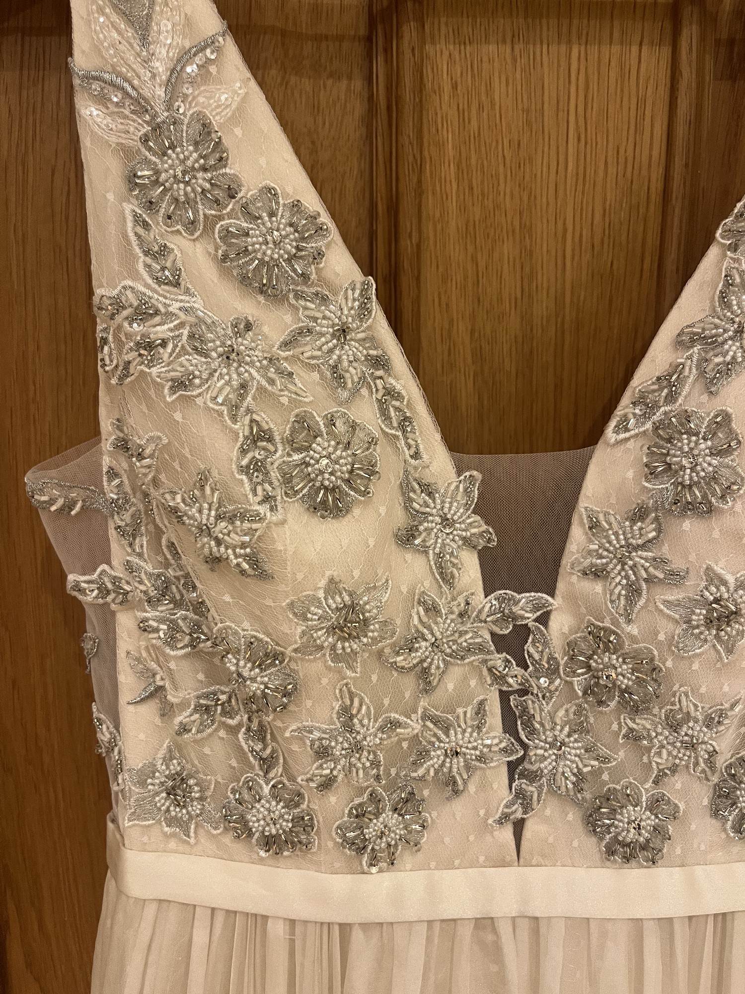 Beautiful Nico gown by Catherine Deane. Incredible sequin design on bodice and multi layer tulle/raw silk flowing skirt. You can still find a pics of it online