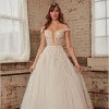 This Calla Blanche wedding dress, model #la21224, epitomizes elegance and romance, perfect for your special day. Crafted in a luxurious cream fabric, it radiates a soft glow, accentuating the serene beauty of an A-line silhouette that flatters every figure. The off-the-shoulder neckline enhances your neckline and collarbone, allowing you to feel both sophisticated and alluring.