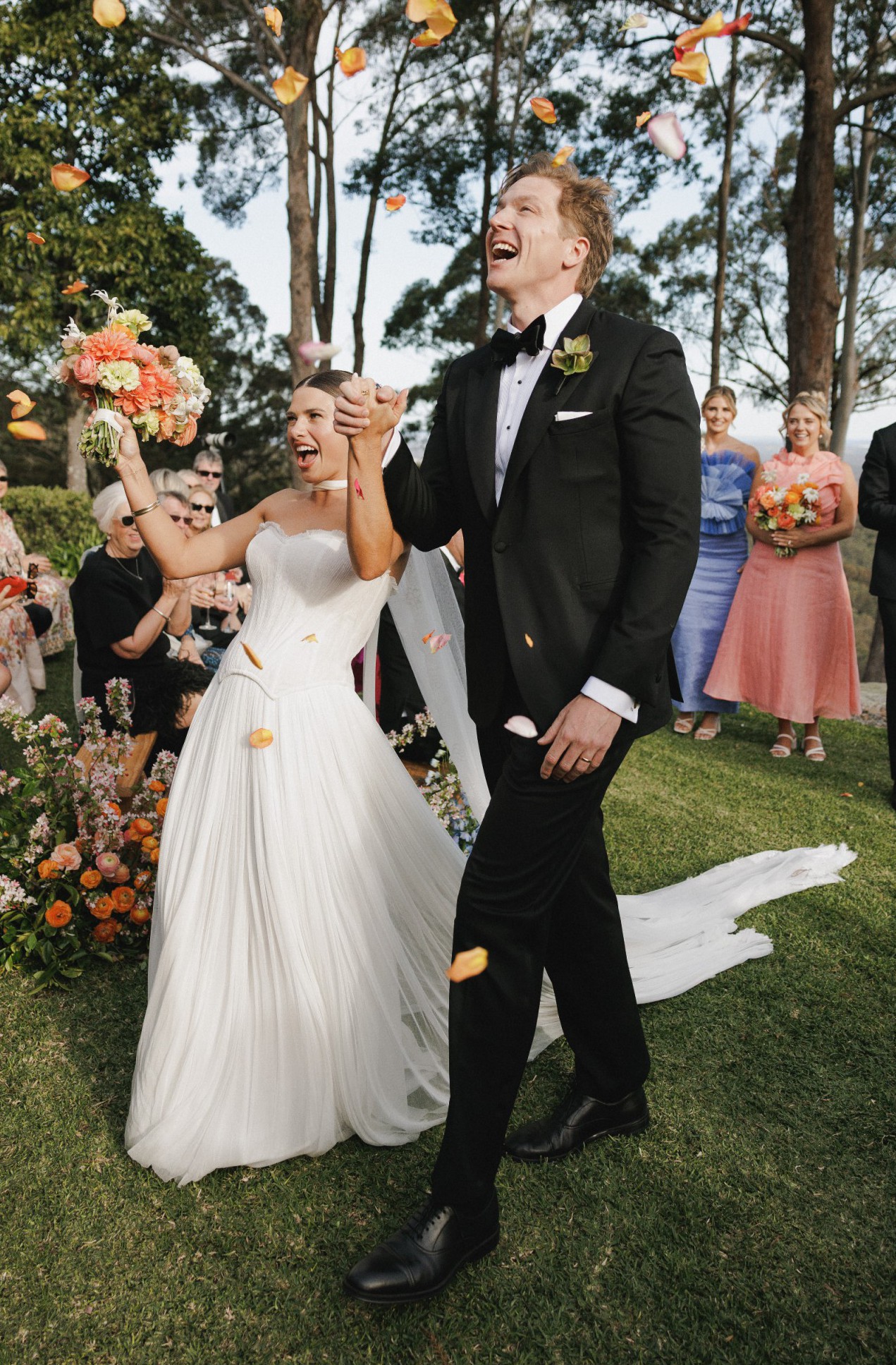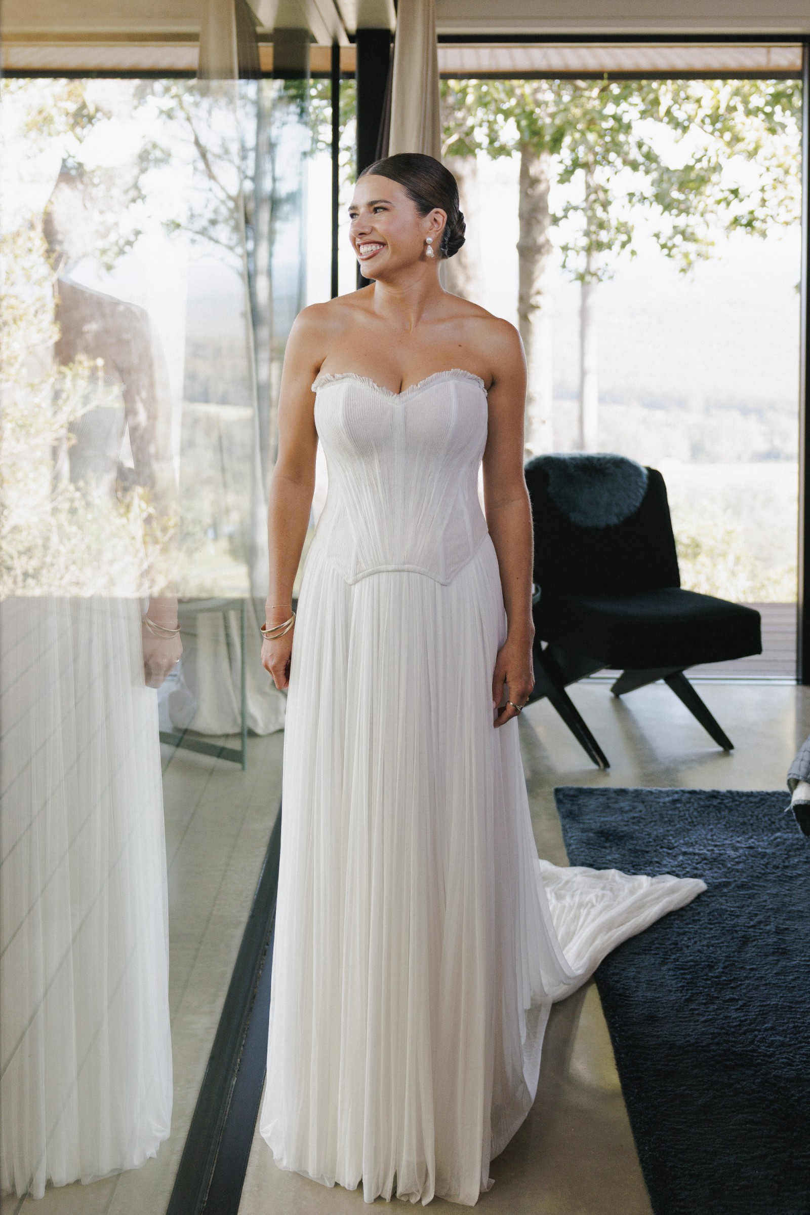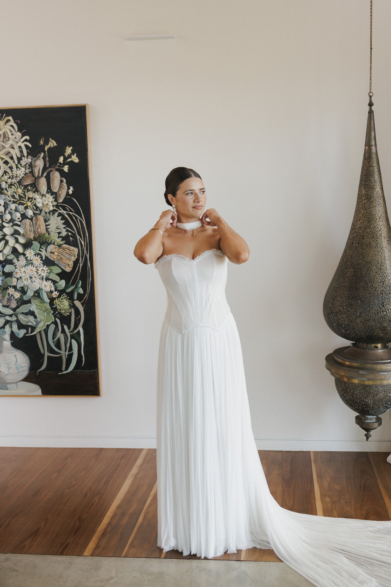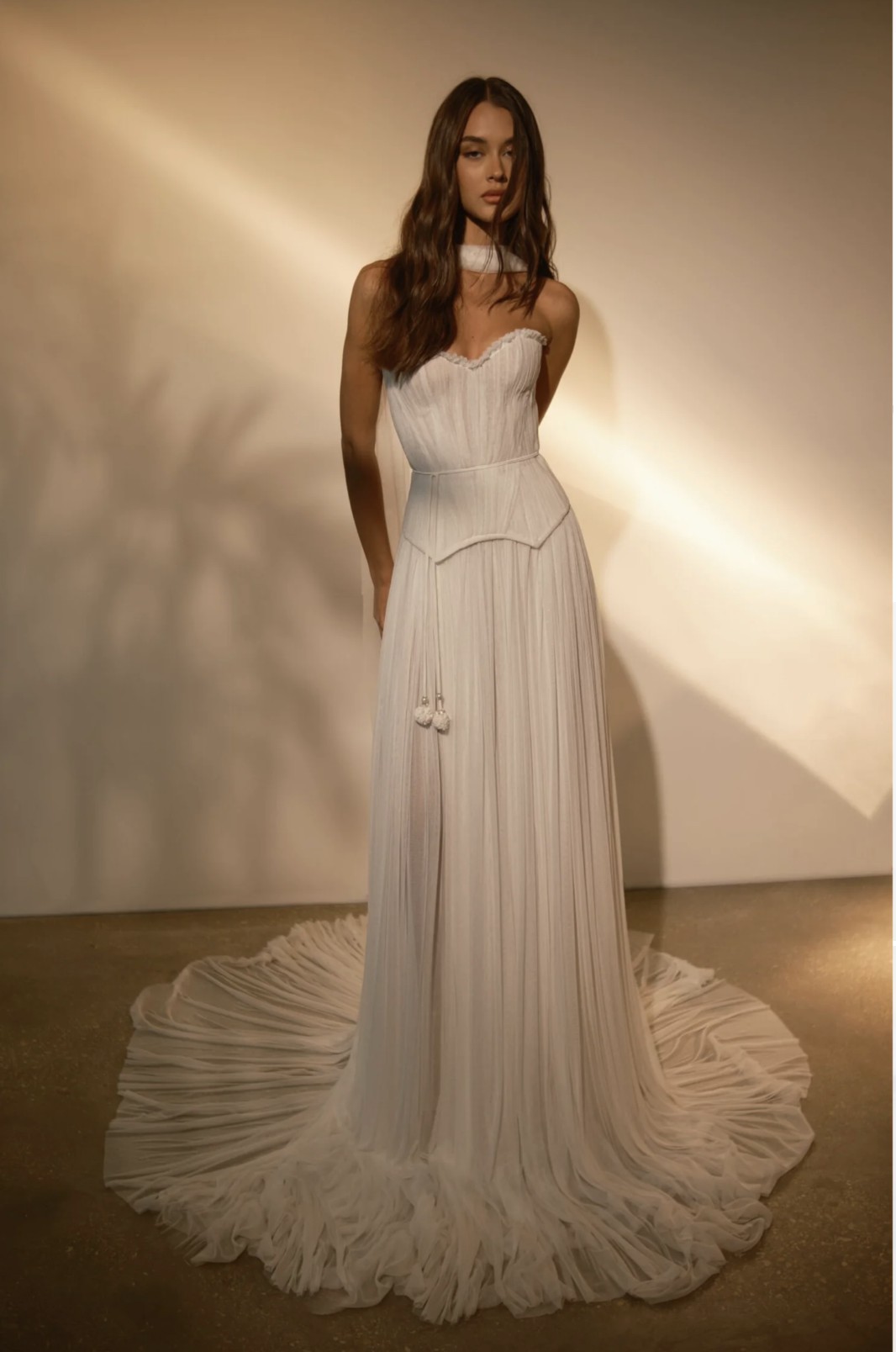 This gown is truly a statement piece — elegant, timeless, and meticulously handcrafted with Margot’s signature structure and romantic detailing. It photographs beautifully from every angle.