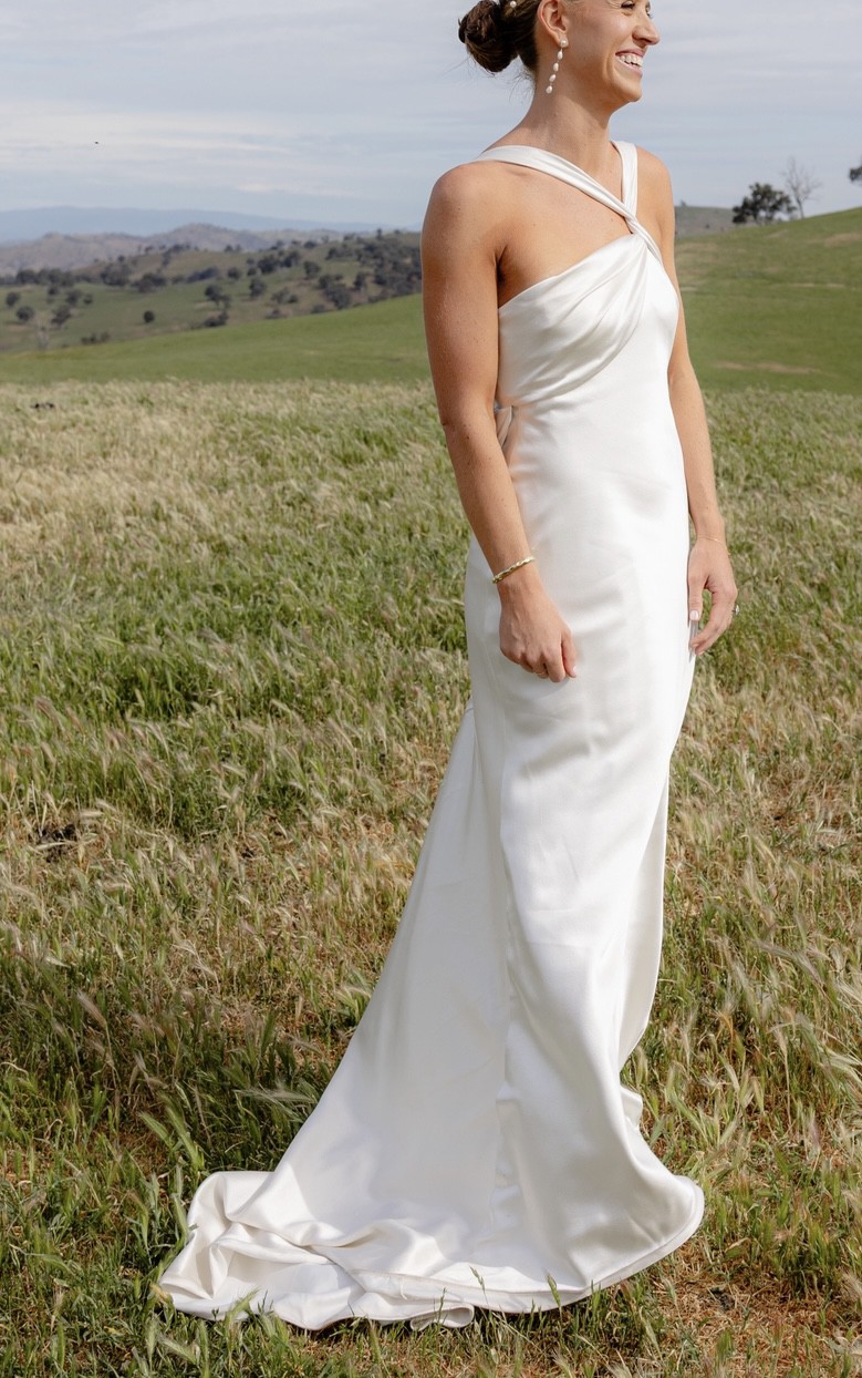 100% silk. Custom made new for me. I’m a standard AU size 8, plenty of room for alterations with the straps.