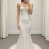 This enchanting Pallas Couture wedding dress is the epitome of sophistication and elegance. With its striking sheath silhouette, it gracefully hugs the body, highlighting your natural curves while providing a tailored fit. The straight neckline adds a modern touch, perfectly complementing the strapless design that showcases your shoulders and collarbone, allowing you to radiate confidence on your special day.