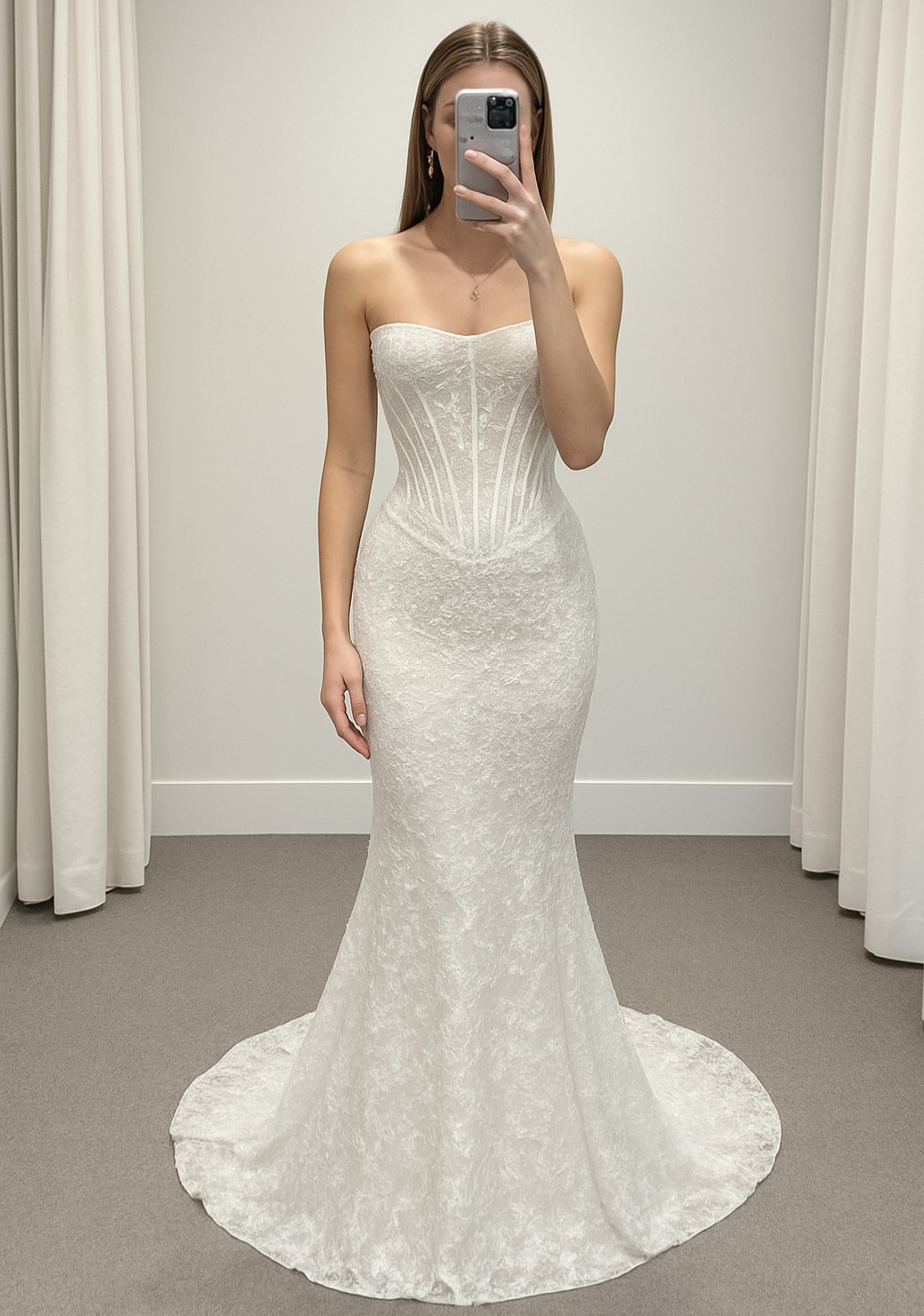 - Altered the length of the dress so there is only a small tail at the back
