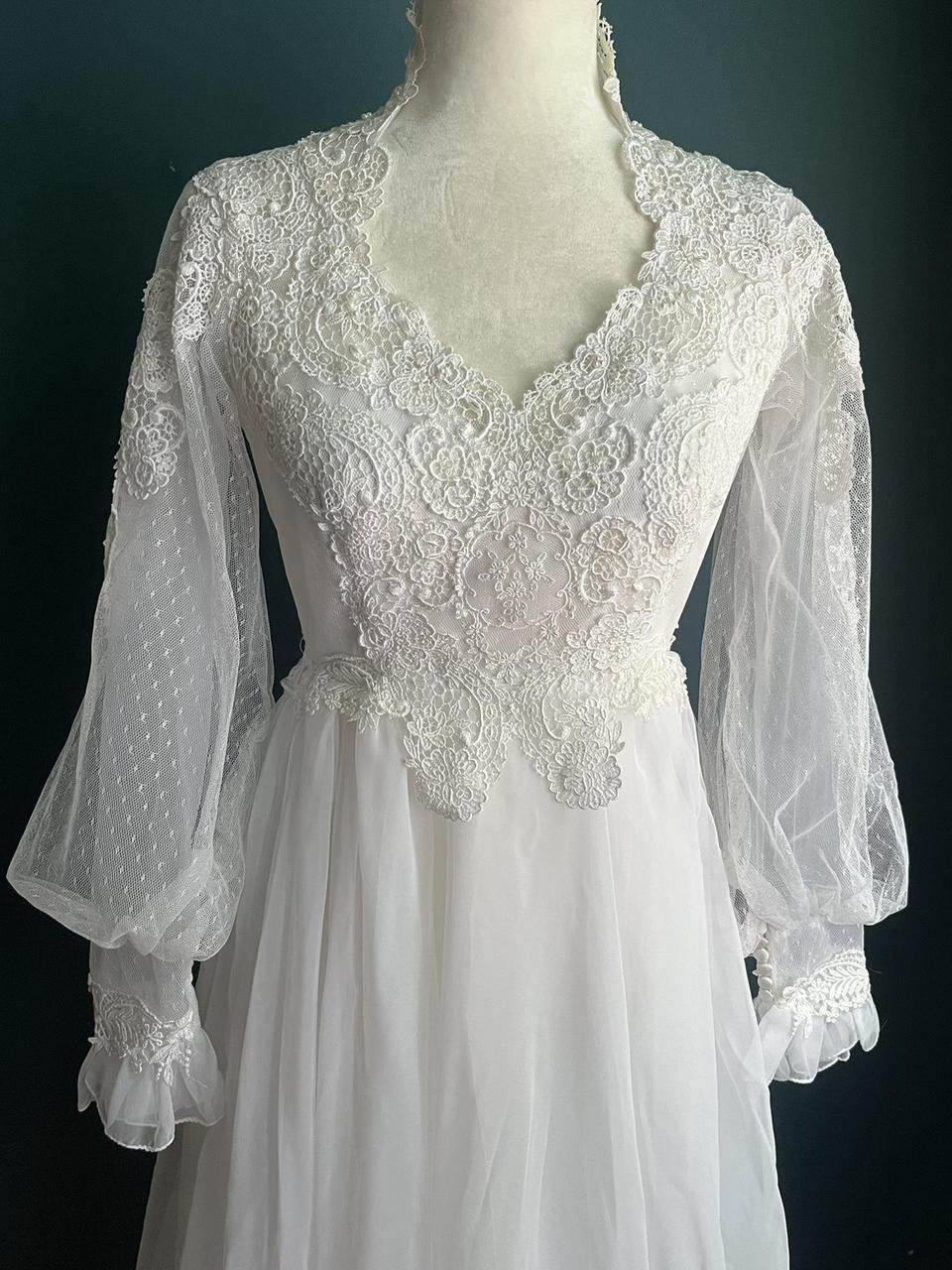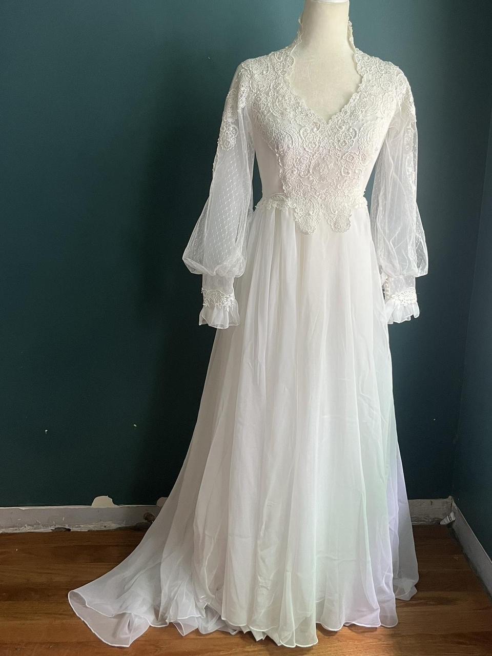 Vintage Alfred Angelo 70’s Wedding Dress sz XS/S, Fit me perfectly, my measurements are included i am usually a small. Can include petticoat from amazon if you would like it!!