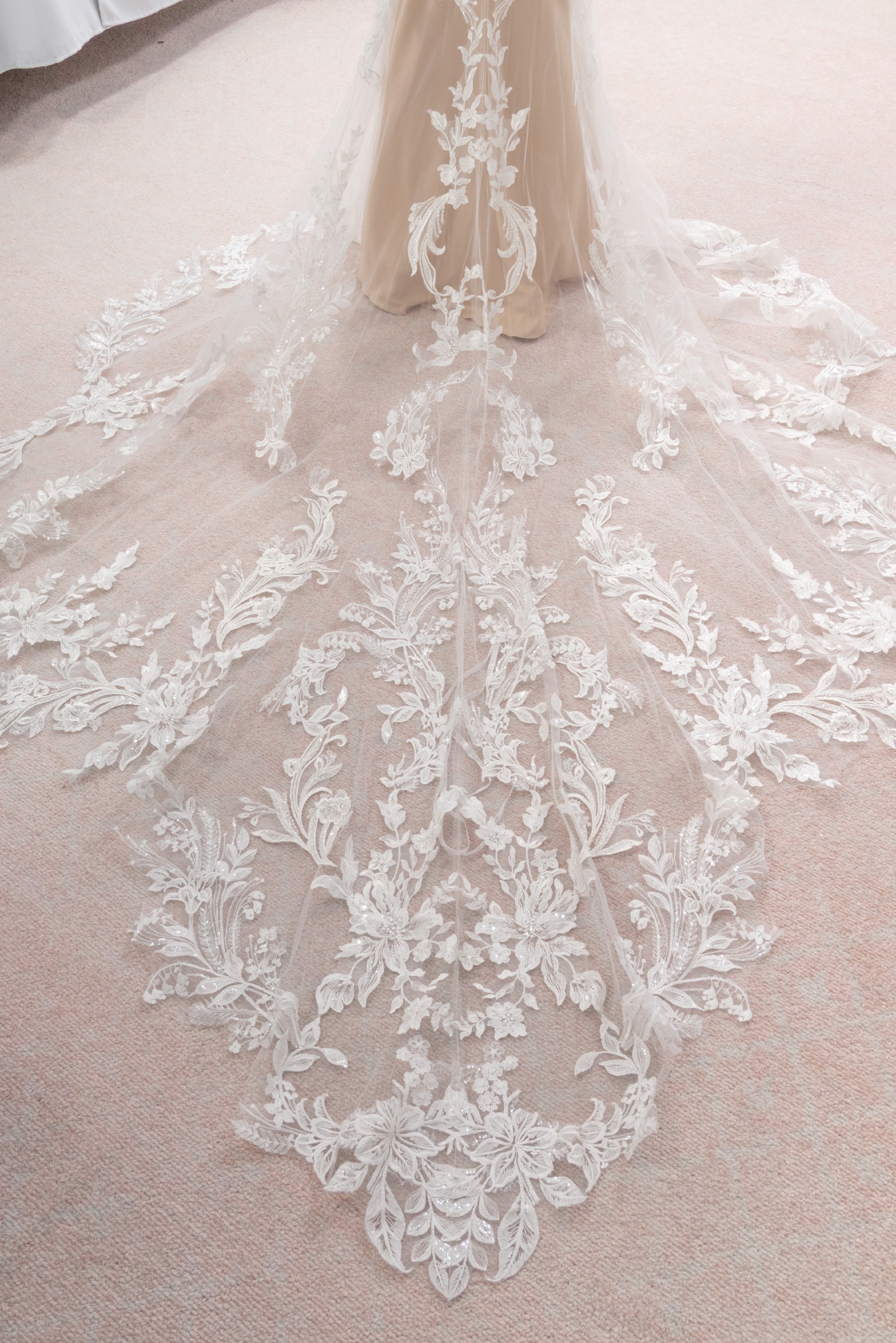 - Bridal sizing varies by designer — use your measurements, not your usual size. It is best to be under on all 3 measurements to have it brought it during alterations