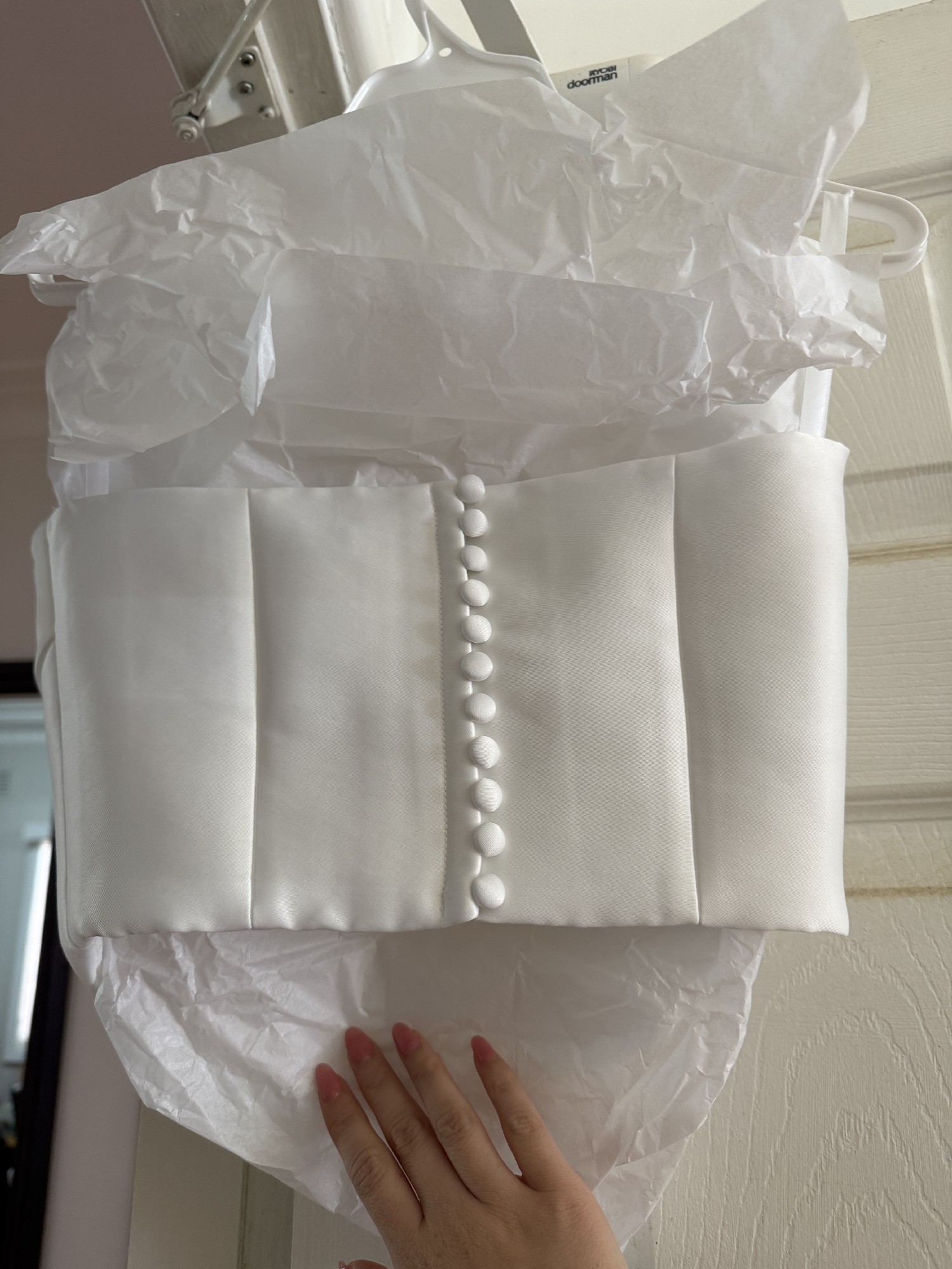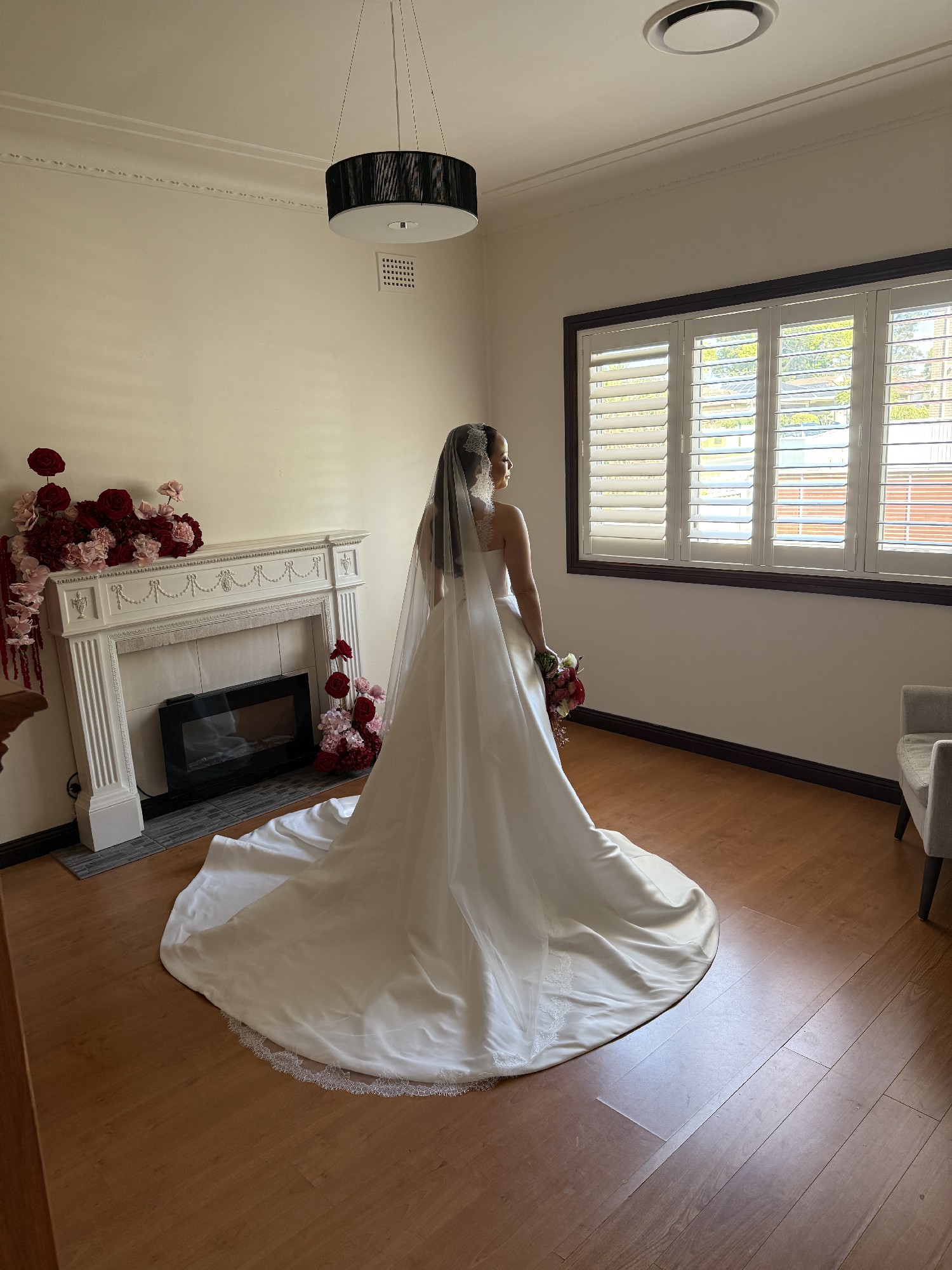 Has been altered for my height 155cm + 7.5cm heels. And couple cm taken in to my measurements listed. A bustle has also been added. Breast cups have also been added but can be easily removed.