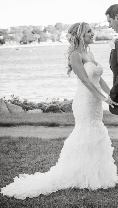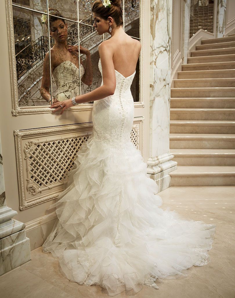 This stunning Casablanca Bridal gown was the perfect choice for my dream wedding. The fit and flare silhouette hugged my curves in all the right places, giving me an elegantly timeless look. The sweetheart neckline framed my décolletage beautifully, while the low back added a tastefully daring touch that made me feel both glamorous and confident.
