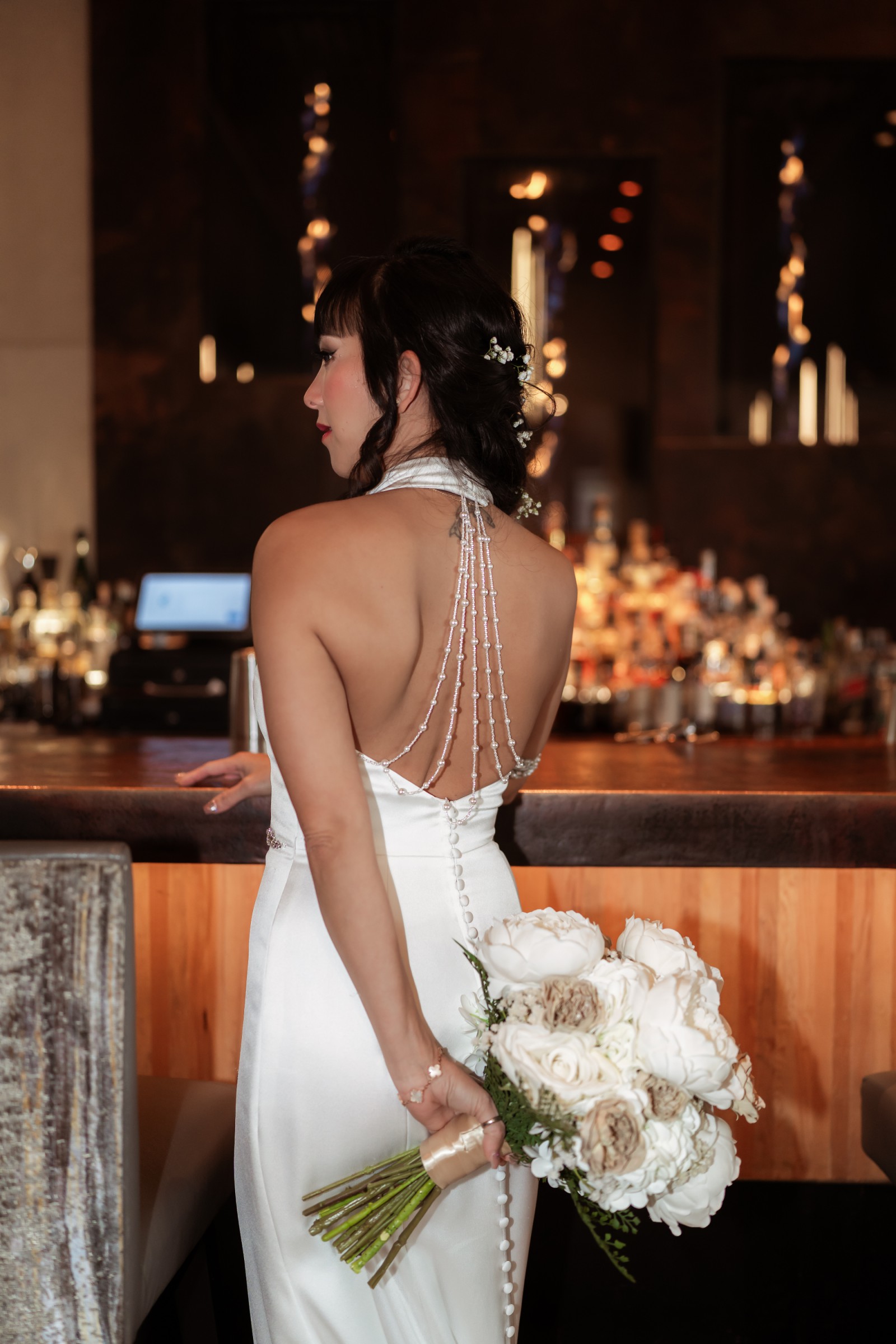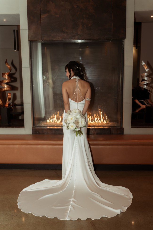 This breathtaking fit and flare wedding dress captured my heart the moment I tried it on, and I know it will do the same for you. Designed with a stunning halter neckline, it accentuates the shoulders beautifully while providing that elegant touch every bride dreams of. The backless detail adds a hint of daring sophistication, making it the perfect choice for a modern bride who wants to radiate confidence on her special day.