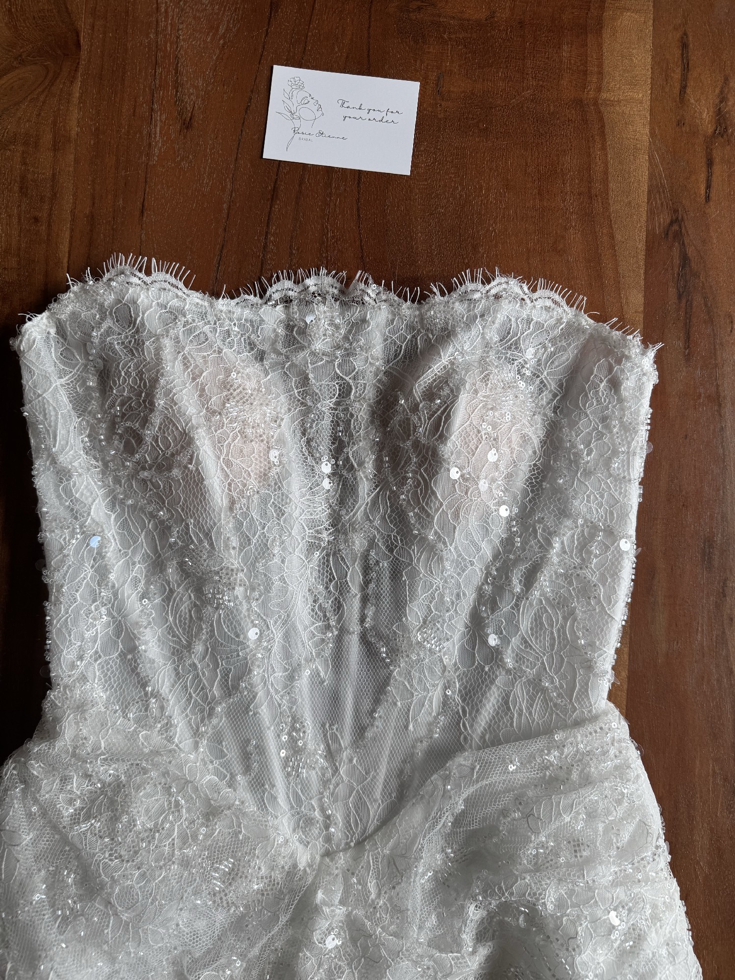 Hope was a very limited edition piece that was out of stock often, making it an incredibly rare find. The dress is completely new and unworn and no alterations were made as I decided to go with a different model in the end. I originally paid 695€ for the dress including duties, so purchasing second-hand not only saves you money on the dress itself but also on the customs fees. It also features a corset back, allowing it to be perfectly adjusted to your body for an elegant and flattering fit. This is a unique opportunity to own a one-of-a-kind Rosie Etienne design at a fraction of the original cost.