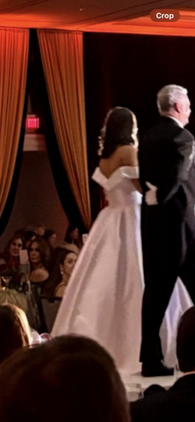 A classic, timeless wedding dress. Well-known designer, worn once, extremely good condition. Built in support. Very flattering on the waist, timeless neckline. It buttons up the entire back. Silk-faced satin