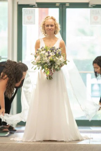 P.S. After the wedding, I consulted a professional cleaner who recommended water-washing for this type of chiffon. I gently washed it on delicate and had it professionally steam-pressed, so the dress is fresh and ready for its next bride.