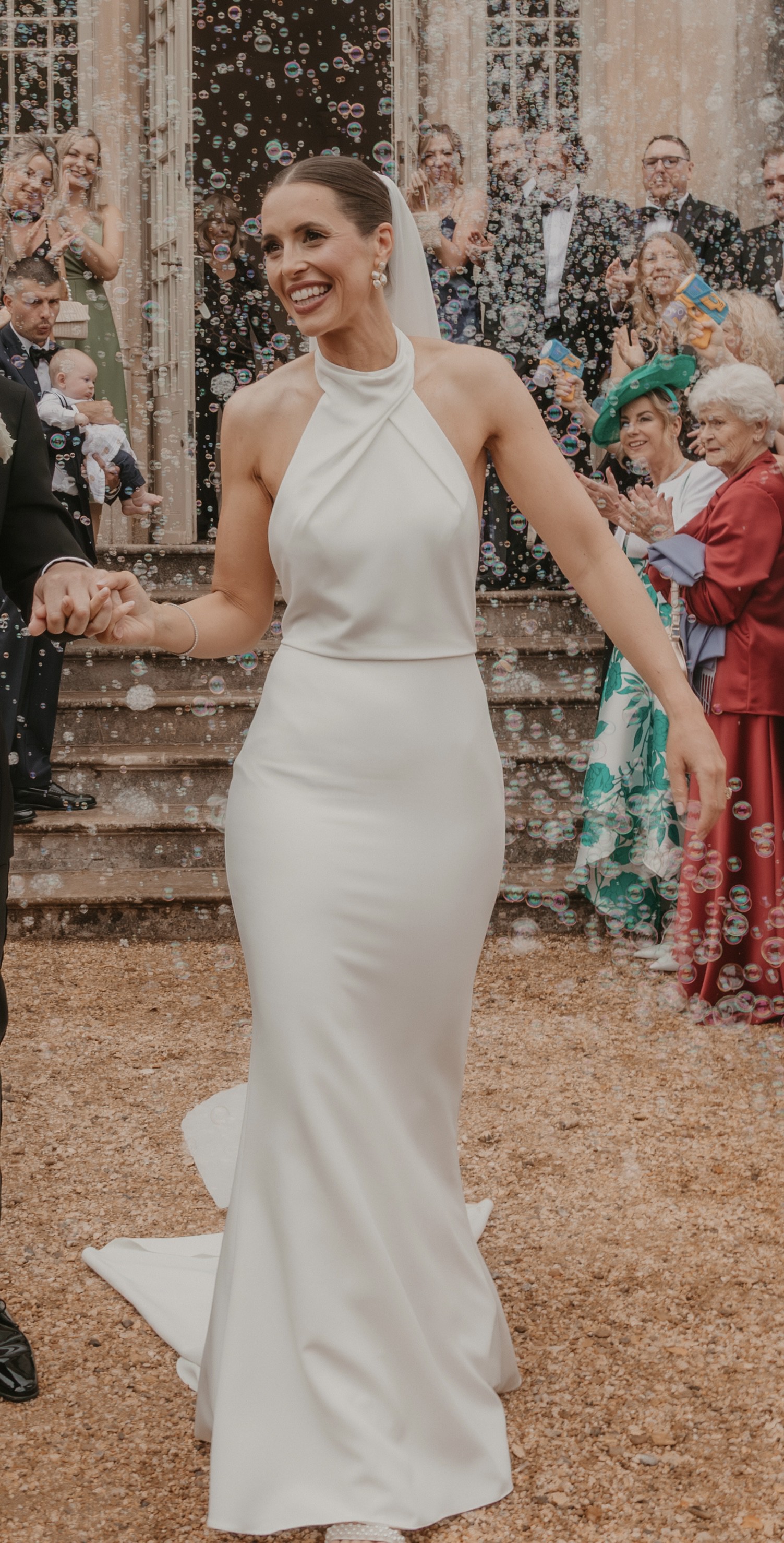 Figure-hugging skirt with godet and button detailing. Dress was soo comfortable with stunning open back.