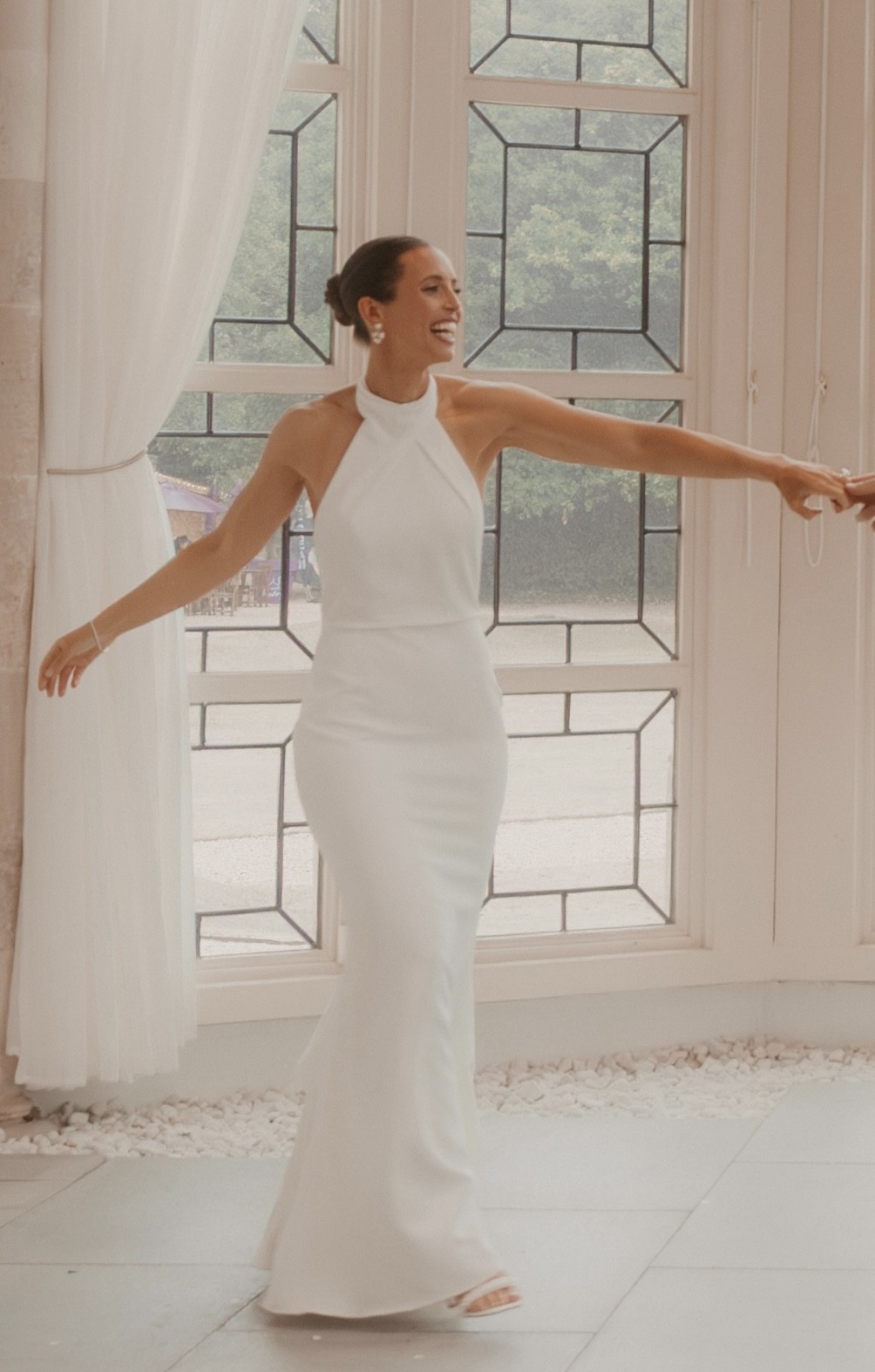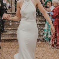 Grayson- Halter neck design with feminine button clasp and slightly stretch material.