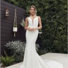 „Portia“ is made up entirely of satin with comfortable stretch lining underneath. The fit-and-flare silhouette is held up by simple spaghetti straps and a plunging V-neckline and V-back, dipping into a stunning 61 inch train.